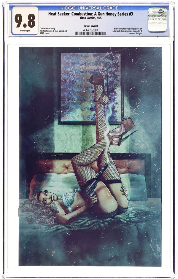 Published Feb 2025 by Titan Comics.Heat Seeker Combustion A Gun Honey Series (2024 Titan) 3H CGC 9.8
