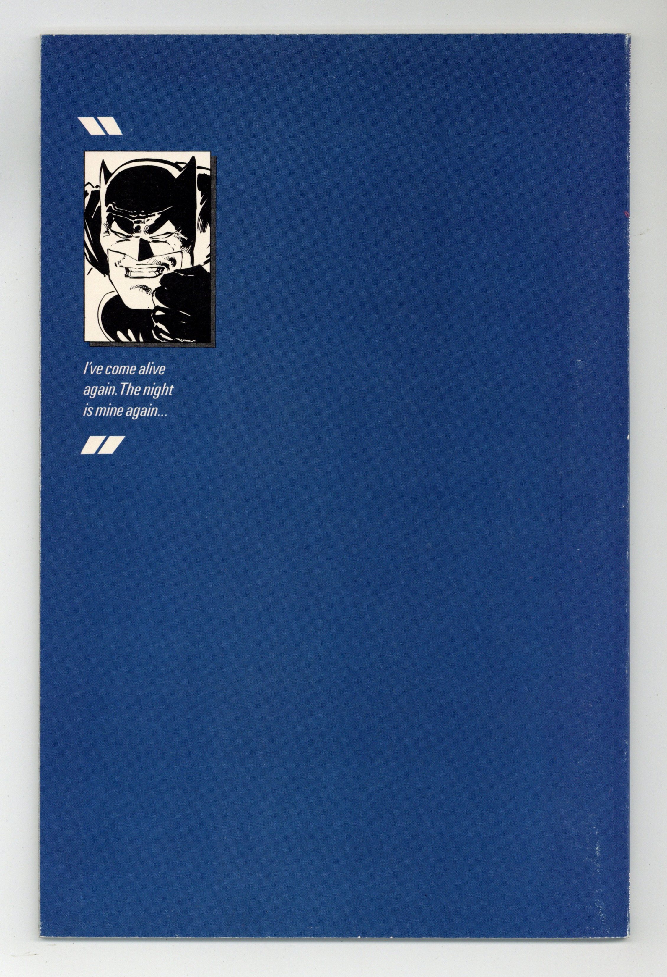 Starts Apr 4 1st printing. NOTE: 2nd printings are labeled as such on the inside cover. Cover by Frank Miller. "The Dark Knight Falls," script by Frank Miller, pencils by Frank Miller, inks by Klaus Janson; Russia launches a nuclear warhead called Coldbringer in response to Superman's presence in Corto Maltese; Superman diverts the missile to an uninhabited desert area; The warhead was designed to disrupt electronics and communications and throw dust and debris into the atmosphere; Deprived of sunlight, Superman nearly dies; Gotham descends into chaos; Some citizens, including Jim Gordon, pull together to fight the fires and retain some semblance of civilization until the power is restored; Batman battles the Joker and the police; The U.S. government sends Superman to take the Dark Knight down; Oliver Queen, the former Green Arrow, prepares Batman for his ultimate battle. 52 pgs., full color. Cover price $2.95.
