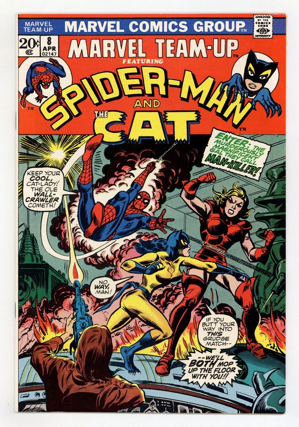 Starts Mar 23 "The Man-Killer Moves at Midnight!" Guest-starring Spider-Man and the Cat. Script by Gerry Conway. Art by Jim Mooney. Cover by Jim Mooney. The Cat (aka Greer Nelson) comes to New York City to recruit the web-slinger -- for a fight against Man-Killer! Apparently, the Man-Killer murdered a politician in Chicago, and now she's in the Big Apple to do likewise. But Spider-Man and the future Tigra have a plan to stick it to the Man-Killer! First appearance of Man-Killer. (Notes: The Cat appears in this story between issues #3 and #4 of the Cat (1972) title. The Cat becomes Tigra in Giant-Size Creatures (1974) #1.) 36 pages. Cover price $0.20.