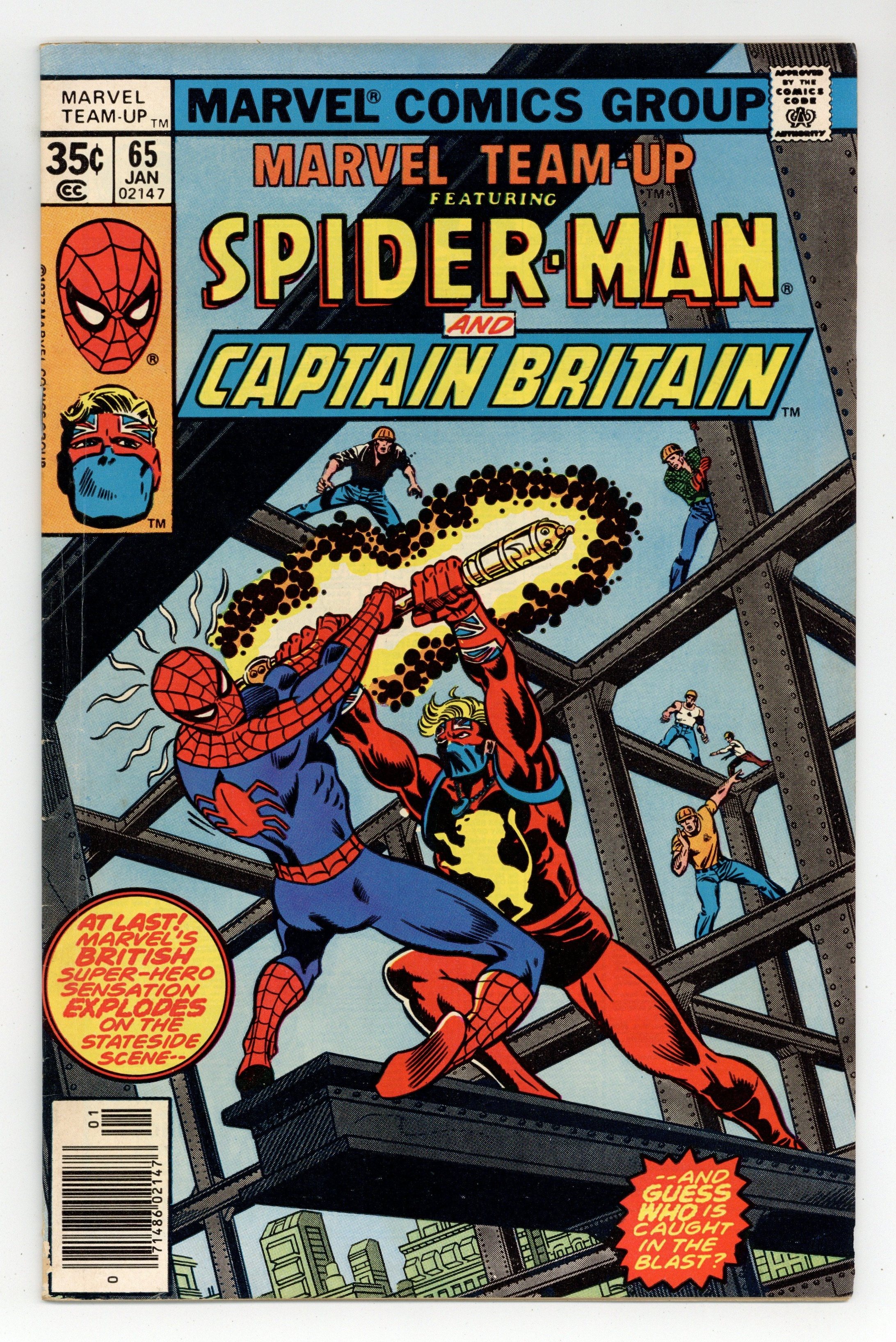 Starts Mar 23 "Introducing Captain Britain" Part 1 of 2. Guest-starring Spider-Man and Captain Britain (1st U.S. appearance). Script by Chris Claremont. Pencils by John Byrne. Inks by Dave Hunt. Cover by George Perez and Joe Sinnott. The Empire State University Dean of Students assigns an English foreign exchange student to be Peter Parker's new roommate. It's Brian Braddock from Thames University. But Brian (aka Captain Britain) has enemies stateside that would like to harm him! After skirmishing with one another following a misunderstanding, the web-slinger and Captain Britain are kidnapped by a giant garbage truck! What will happen next? First appearance of Arcade. Cameo appearance by Captain DeWolff. (Notes: This issue includes a 4-page retelling of Captain Britain's origin. This two-part story was reprinted in Marvel Tales 201 and 202.) 36 pages. Cover price $0.35.
