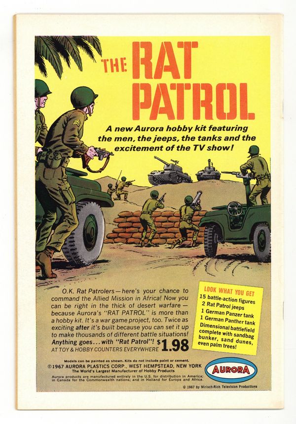 Starts Jan 26 Animal Man stars in "The Mod Gorilla Boss!" (12 pages); and "The Cackling Conjurer!" Carmine Infantino cover pencils, George Roussos cover inks. 36 Pages, Full Color. Cover price $0.12.