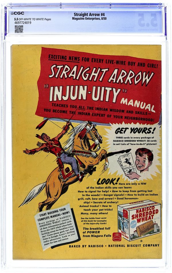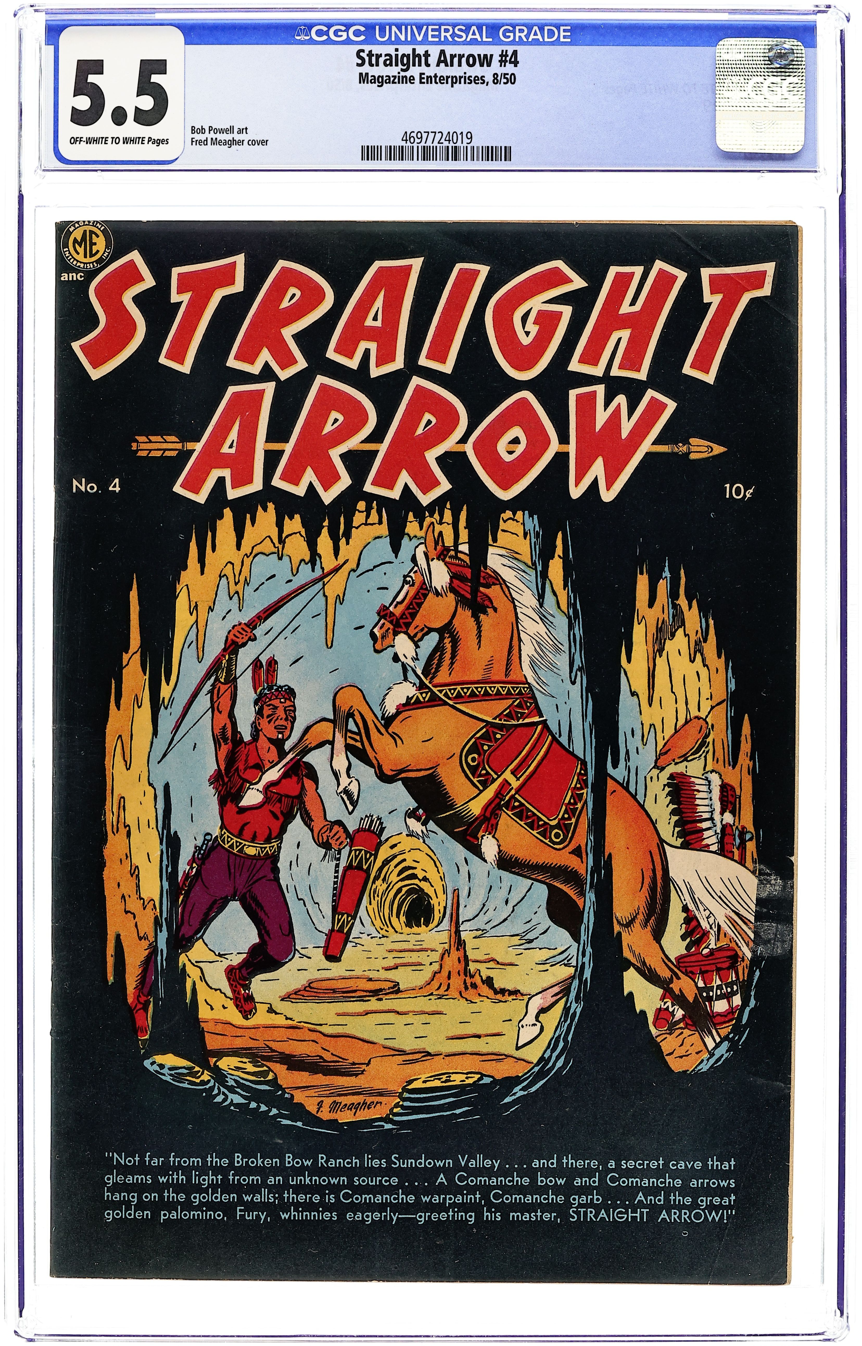Published Aug 1950 by Magazine Enterprises.Straight Arrow (1950 Magazine Enterprises) 4 CGC 5.5