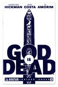 Ends Apr 27 8:20 PM CST Bid History 1 bid Current Bid $1 Your Secret Max Bid If you'd like to bid, please log in or register. Leather Cover - Written by Jonathan Hickman Art by Di Amorim. Like a thunderbolt from heaven, the epic launch issue of GOD IS DEAD is here! East of West and Fantastic Four author JONATHAN HICKMAN launches a fierce new series that stomps where others fear to tread. Mankind has argued over the existence of gods since the dawn of time. In modern eras it's been fashionable to mock religious believers with taunts of scientific testimony and fact. But when the gods of old begin to reappear on earth and claim the domain of man for their own, the world is thrown into a state of utter anarchy. Now Horus walks the streets of Egypt, Zeus has taken over the Sistine Chapel, and Odin is coordinating the dissection of the earth among the returned deities. Mankind held sway over the world for thousands of years and their hubris over that time has made them powerful but when faced with the divine, can mortal weapons put an end to the second coming of the gods?