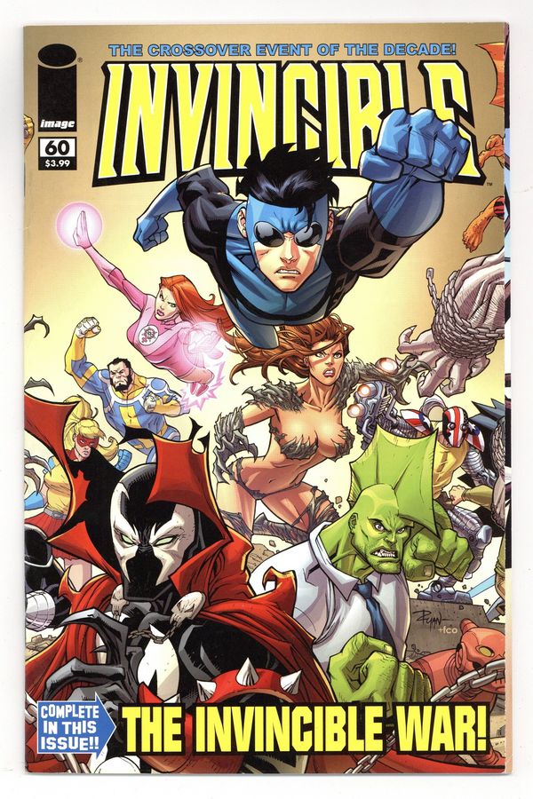 Ends Mar 30 8:38 PM CST Bid History 27 bids Current Bid $145 Your Secret Max Bid If you'd like to bid, please log in or register. First Printing, Gatefold Wraparound Cover by Ryan Ottley & FCO Plascencia. by Robert Kirkman and Ryan Ottley & FCO Plascencia. From Image Comics. The Crossover Event of the Decade! Invincible is drawn into a company-wide crossover event done in one oversized issue! Spawn! Savage dragon! Youngblood! Shadowhawk! Cyberforce! Pitt! Ultra! and many, many more all here for one issue - don't miss it! 40 pages, FC. Cover price $3.99.