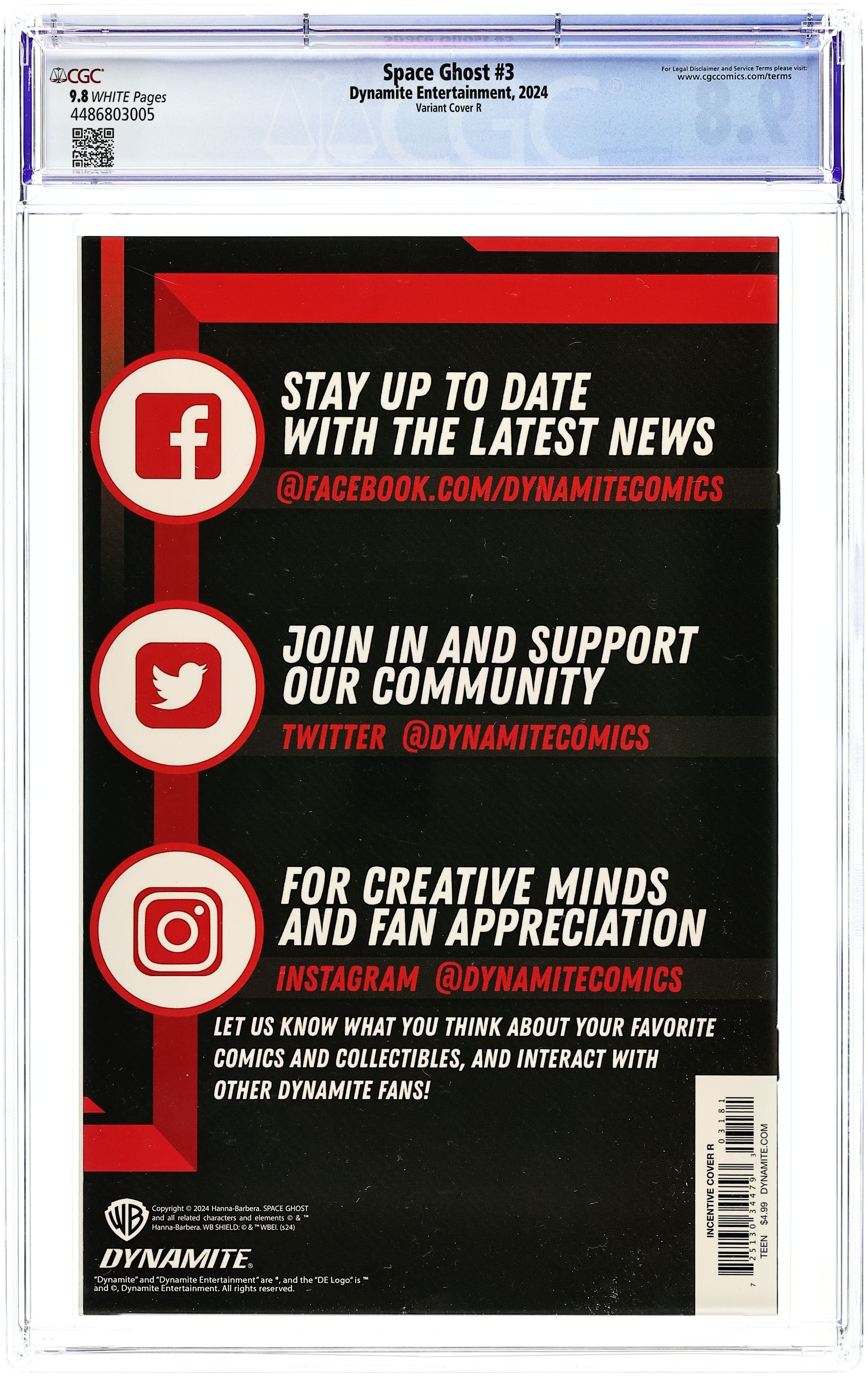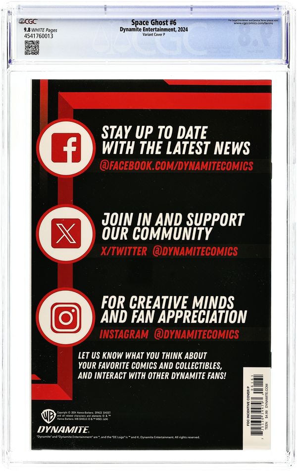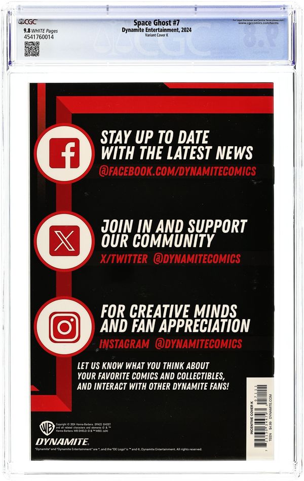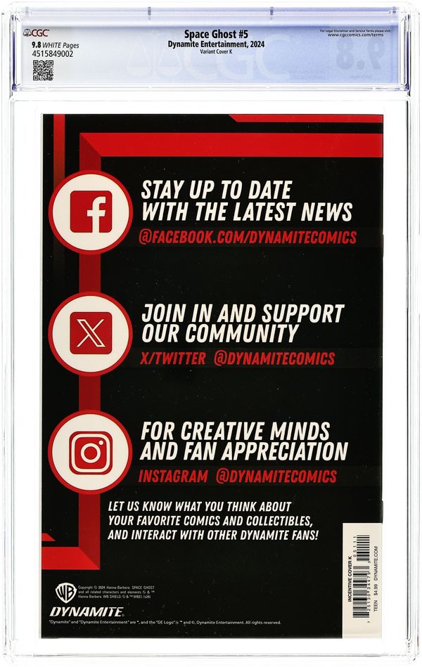Published 2024 (est.) by Dynamite Entertainment.Space Ghost (2024 Dynamite) 4J CGC 9.8