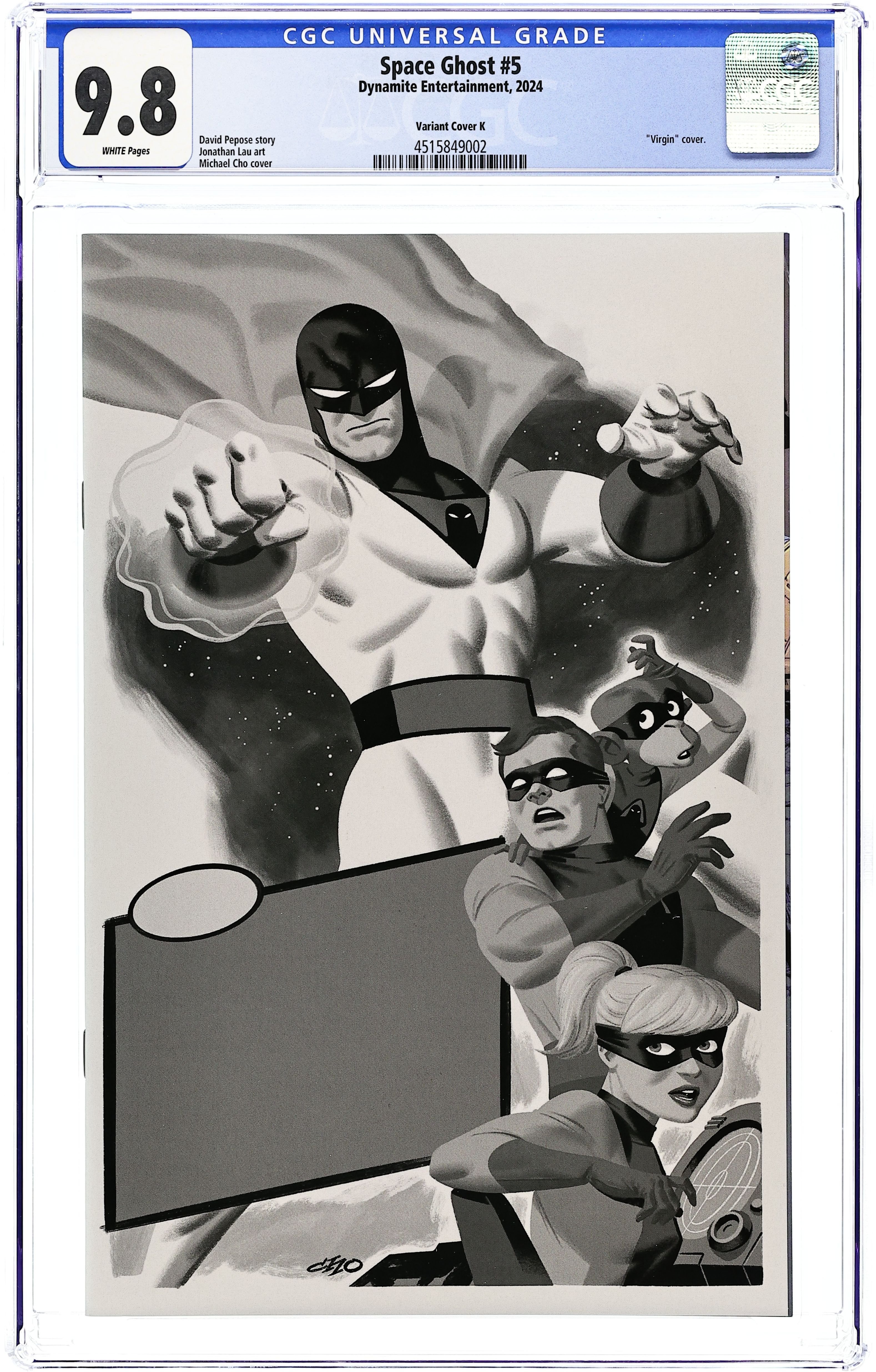 Published 2024 (est.) by Dynamite Entertainment.Space Ghost (2024 Dynamite) 5K CGC 9.8 Cho B&W Virgin 1:30 Variant