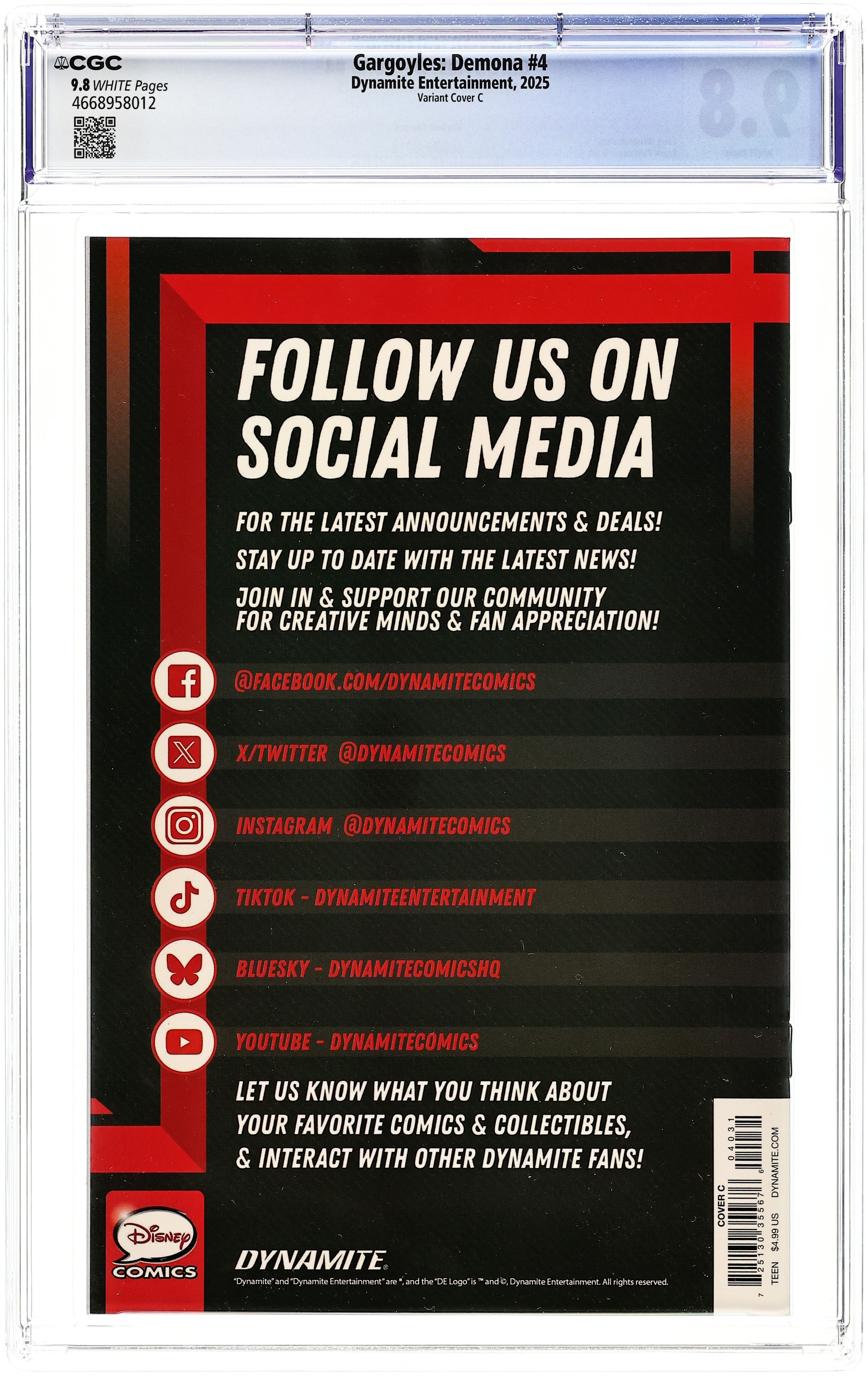 Published 2025 by Dynamite Entertainment.Gargoyles Demona (2025 Dynamite) 4J CGC 9.8