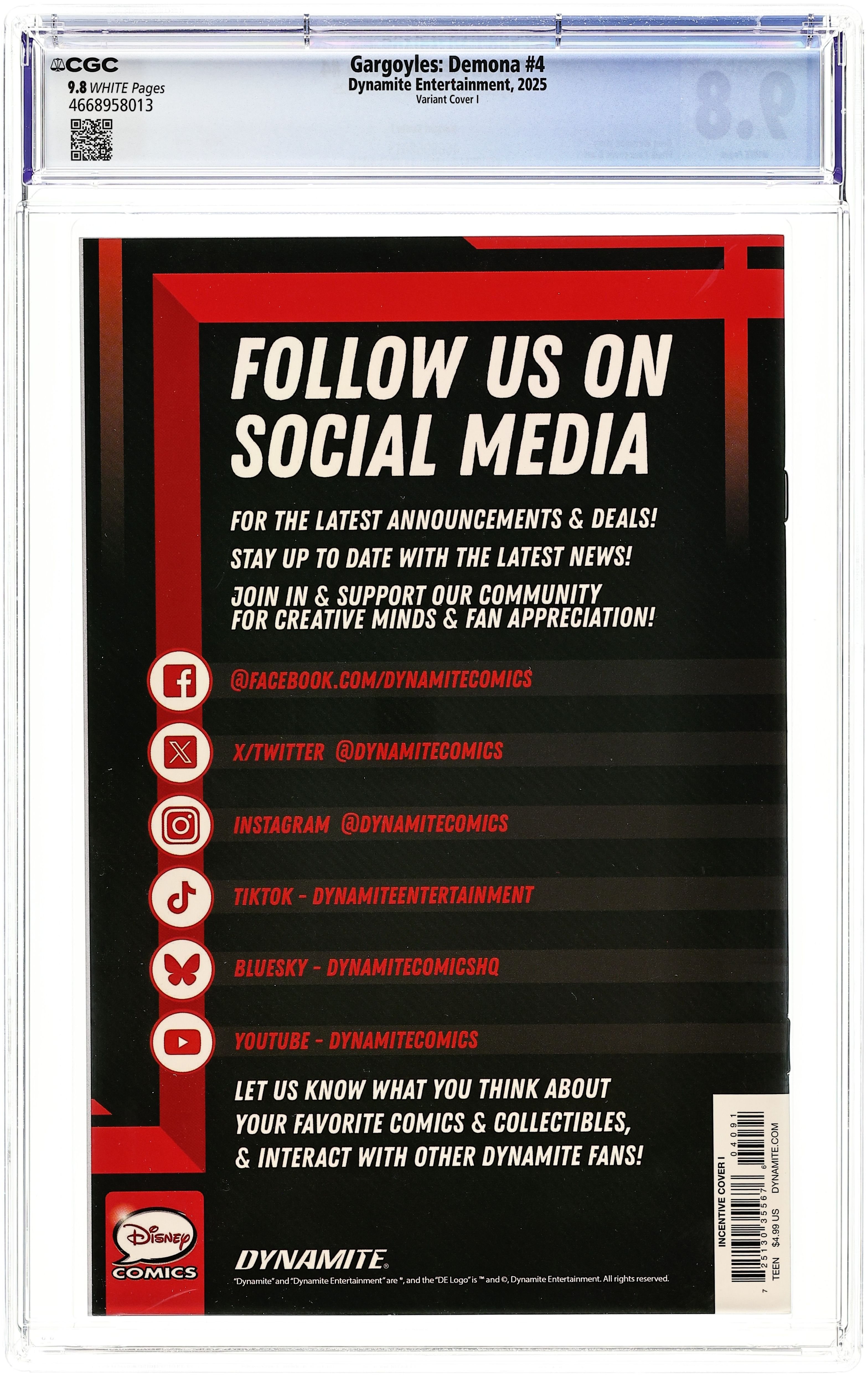 Published 2025 by Dynamite Entertainment.Gargoyles Demona (2025 Dynamite) 4I CGC 9.8