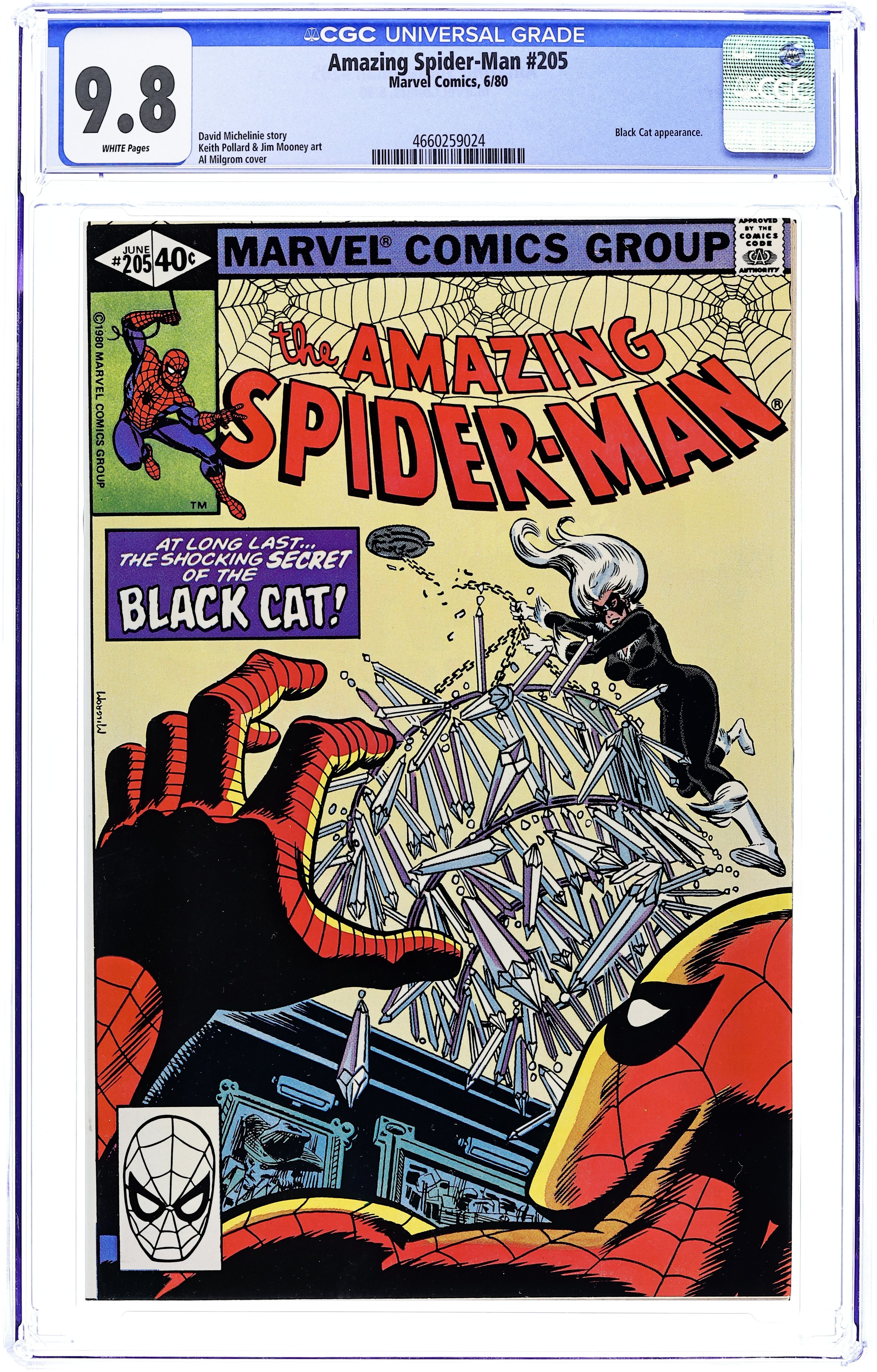 Direct Edition. Nothing Can Stop the Juggernaut!" Part 1 of 2. Script by Roger Stern. Art by John Romita Jr. (breakdowns) and Jim Mooney (finishes). Cover by John Romita Jr. and Al Milgrom. One of the classic Spider-Man stories of the bronze age! Black Tom Cassidy is tired of losing to the X-Men and thinks that having Madame Webs powers on his side would reverse his fortune! So he sends his indestructible friend to grab her! But Madame Web foresees the danger and calls her wall-crawling friend to save her! And in the middle of Manhattan, the Amazing Spider-Man meets the Juggernaut...for the life of Madame Web! This may become one of the web-slingers greatest victories...or one of his bitterest defeats. A two-part masterpiece! Cameo appearances by Wong, J. Jonah Jameson, Joe Robertson, and Betty Brant Leeds. (Notes: The Juggernaut previously appeared in Spider-Woman 38. Betty Brant was last seen in Amazing Spider-Man 197. This story was reprinted in 1989 in the trade paperback: The Sensational Spider-Man -- Nothing Can Stop the Juggernaut; and also in Spider-Man Magazine 3.) 36 pgs. Cover price $0.60.