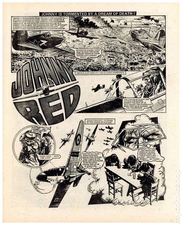 November 26, 1977. Features include Judge Dredd (script by John Wagner, art by Bill Ward), Tharg's Future-Shocks (script by Martin Lock, art by Trev Goring), Invasion (script by Gerry Finley-Day, art by Mike Dorey), Dan Dare (script by Finley-Day, art by Dave Gibbons), M.A.C.H. 1 (script by Alan Hebden, art by Lozano/Canos), and Inferno (script by Tom Tully, art by Belardinelli). Kevin O'Neill cover.
