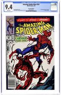 Newsstand Edition. 80-page giant 30th Anniversary issue, with the first appearance of Spider-Man 2099! The Lizard returns in "Fathers and Sins." Script by David Michelinie, pencils by Mark Bagley, inks by Randy Emberlin. J. Jonah Jameson is featured in "How I Created Spider-Man!" Script by David Michelinie, art by Aaron Lopresti. Gwen Stacy takes center stage in "I Remember Gwen." Script by Stan Lee, plot by Tom DeFalco, art by John Romita Sr. (Cameos by the Green Goblin and Doctor Octopus.) The Prowler is also here in "A Friend in Need." Script by Tom DeFalco, pencils by Tod Smith, inks by Andrew Pepoy. There are also two text pieces, "The Saga of Spidey's Parents" by Stan Lee, and "Spider-Man: The First Thirty Years" by Peter Sanderson. Spider-Man 2099 gets a sneak preview, with a script by Peter David, pencils by Rick Leonardi, and inks by Al Williamson. This issue was originally released with a fold-out poster of Spidey versus Venom and Carnage (poster may be missing in lower grades). 84 pgs. Cover price $3.95.