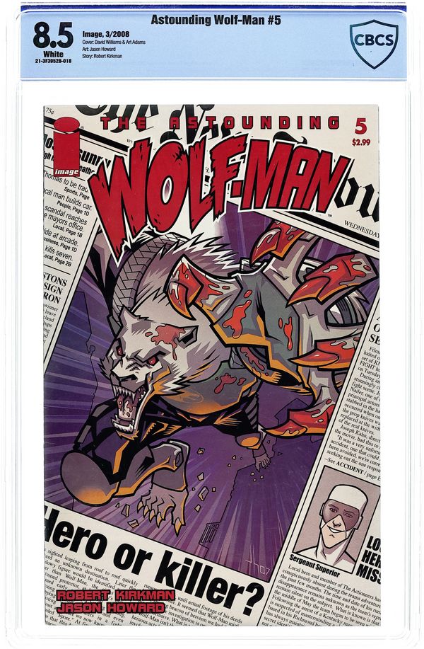 Cover by David Wiliams (inked by Art Adams). story ROBERT KIRKMAN art JASON HOWARD Hero or Villain? The time has come for Gary Hampton, The Astounding Wolf-Man to make his choice. Can he contain the beast within... or will he succumb to the bloodlust? Cover price $2.99.