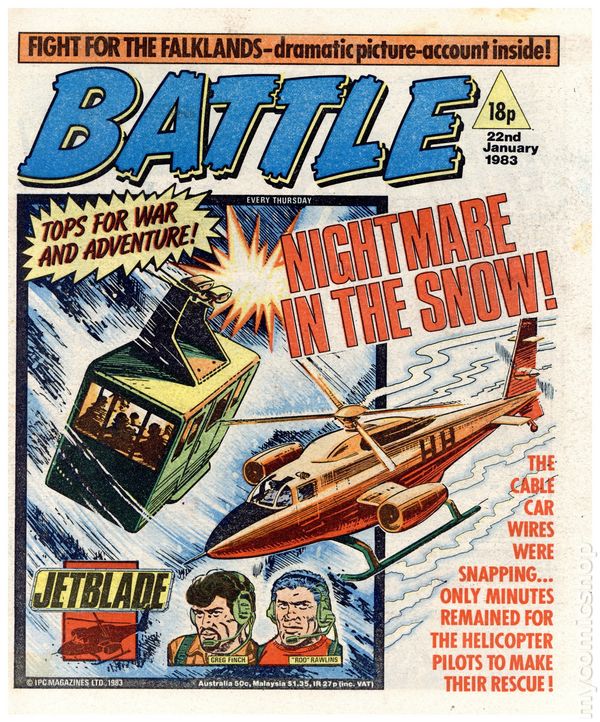 January 8, 1983. Published by IPC Magazines, Ltd. in the U.K. "Tough action war stories every week!" Combined with Valiant (also an IPC publication). 9 x 11 in.; black and white (color centerspread); 32 pages; 18p cover price.