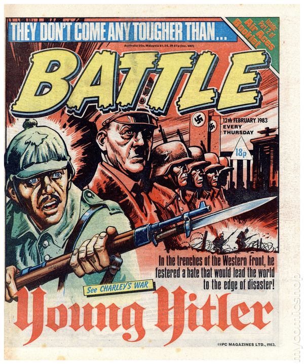 February 12, 1983. Published by IPC Magazines, Ltd. in the U.K. "Tough action war stories every week!" Combined with Valiant (also an IPC publication). 9 x 11 in.; black and white (color centerspread); 32 pages; 18p cover price.