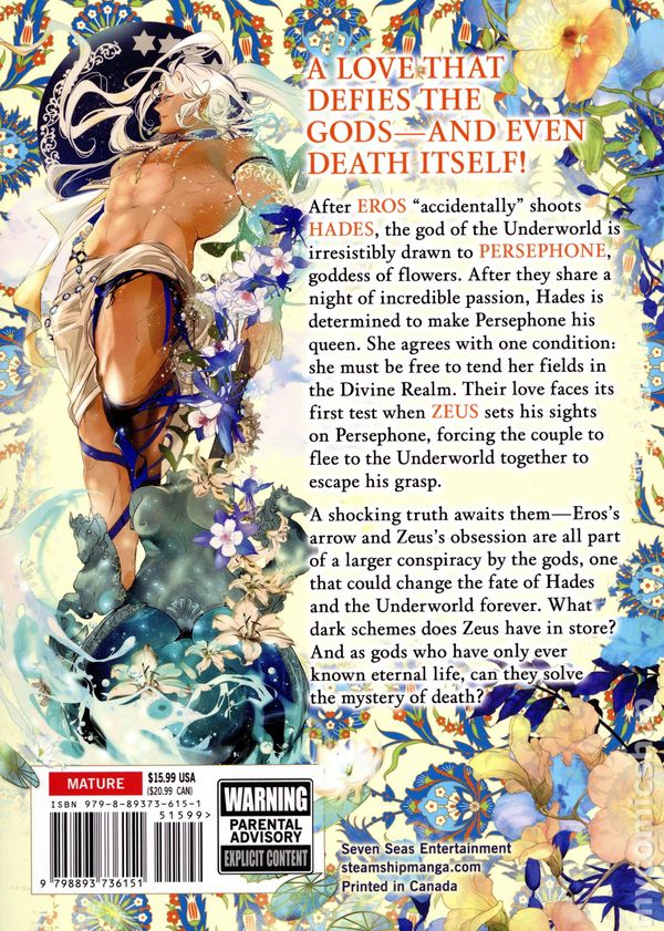 Volume 2 - 1st printing. Written by Foxies Busho. Art and cover by Clione. Translated by Alyssa Niioka. A LOVE THAT DEFIES THE GODS—AND EVEN DEATH ITSELF! After Eros accidentally shoots Hades, the god of the Underworld is irresistibly drawn to Persephone, goddess of flowers. After they share a night of incredible passion, Hades is determined to make Persephone his queen. She agrees with one condition: she must be free to tend her fields in the Divine Realm. Their love faces its first test when Zeus sets his sights on Persephone, forcing the couple to flee to the Underworld together to escape his grasp. A shocking truth awaits them—Eross arrow and Zeuss obsession are all part of a larger conspiracy by the gods, one that could change the fate of Hades and the Underworld forever. What dark schemes does Zeus have in store? And as gods who have only ever known eternal life, can they solve the mystery of death? Softcover, 5-in. x 7-in., 168 pages, B&W. Mature Readers Cover price $15.99.