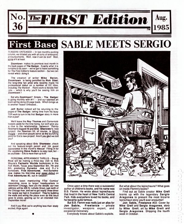Cover art by John Bolton. The Seed and the Sower, script by Jon Jay Muth, art by Jon Jay Muth and Kent Williams. Cobalt- 60 story, script by Larry Todd, art by Mark Bode. Mediaview article by Dennis O'Neil. Beyond Legend, script by Archie Goodwin, art by Victor de la Fuente. The Sword of Sh'rlii, script and art by Paty Cockrum. Wah, Wah, Wah... starring Gedeon Plexus, script and art by Zoran Vanjaka. Arise Awake Year 20, script and art by Marc Hempel. Abyss (Chapter VI) starring Toadswart, script and art by Tim Conrad. Time of the Dragon article about The Black Dragon, art by John Bolton. The Hidden Stars (Chapter Six) --The Last Galactus Story, script and pencils by John Byrne, inks by Terry Austin. 100 pgs. Aug, 1985. $2.50. Cover price $2.50.