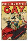 Stories by unknown. Art by unknown. Gabby Hyatt...the teen-age laugh riot! Featuring Gabby in: "This Guy's the Limit"; "The Big Bluff"; "Whoa Is Me!"; and "Service with a Smile!" Characters in these stories: Gabby Hyatt; Taffy O'Toole; Timothy O'Toole (Taffy's father); Coach Grover; Happy; Peahead Wilson; Percy Potts; Spike McBrawn; Chauncey Featherstone; Mrs. Featherstone; Penelope Van Phipps; Rusty; Algy Duckworth [also as Algernon Duckworth]; Mr. Mack. Plus: Ezra in "Tennis Match!" (Note: final appearance, except for reprints.) Characters in this story: Ezra Jones; Rollo Grant. Also: untitled Candy story, reprinted from Candy (1947 Quality) #26. Characters in this story: Candy O'Connor; Ted Dawson; Agnes O'Connor; Tim O'Connor; Trish Traynor; Jim. And: 1-page text story "Ossie Gets Stuck"! Characters in this text story: Ossie; Ed Marks; Marcie; Mary Lou; Robbie Moore. 32 pages, full color. Cover price $0.10.
