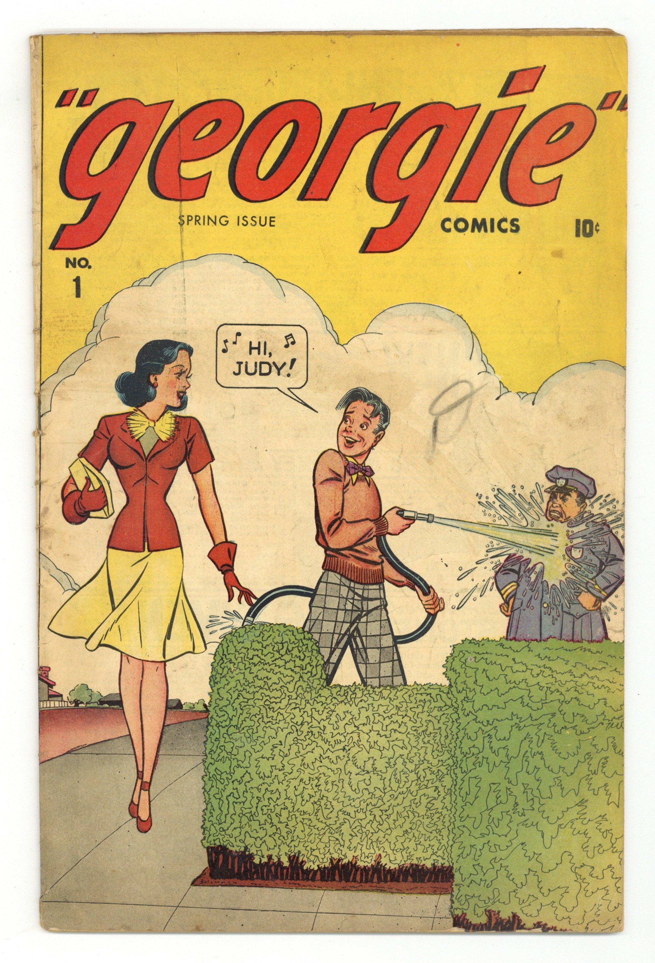 Stories by unknown. Art and Cover by Frank Carin. Georgie stars in: "Georgie Lawson Bags Escaped Convict"; five untitled stories; 2-page text story "Noswal the Great"; and two puzzle pages. Characters in this issue: Georgie; Judy; Monty; Captain Goodman (no longer looking like Martin Goodman). 52 pages, full color. Cover price $0.10.