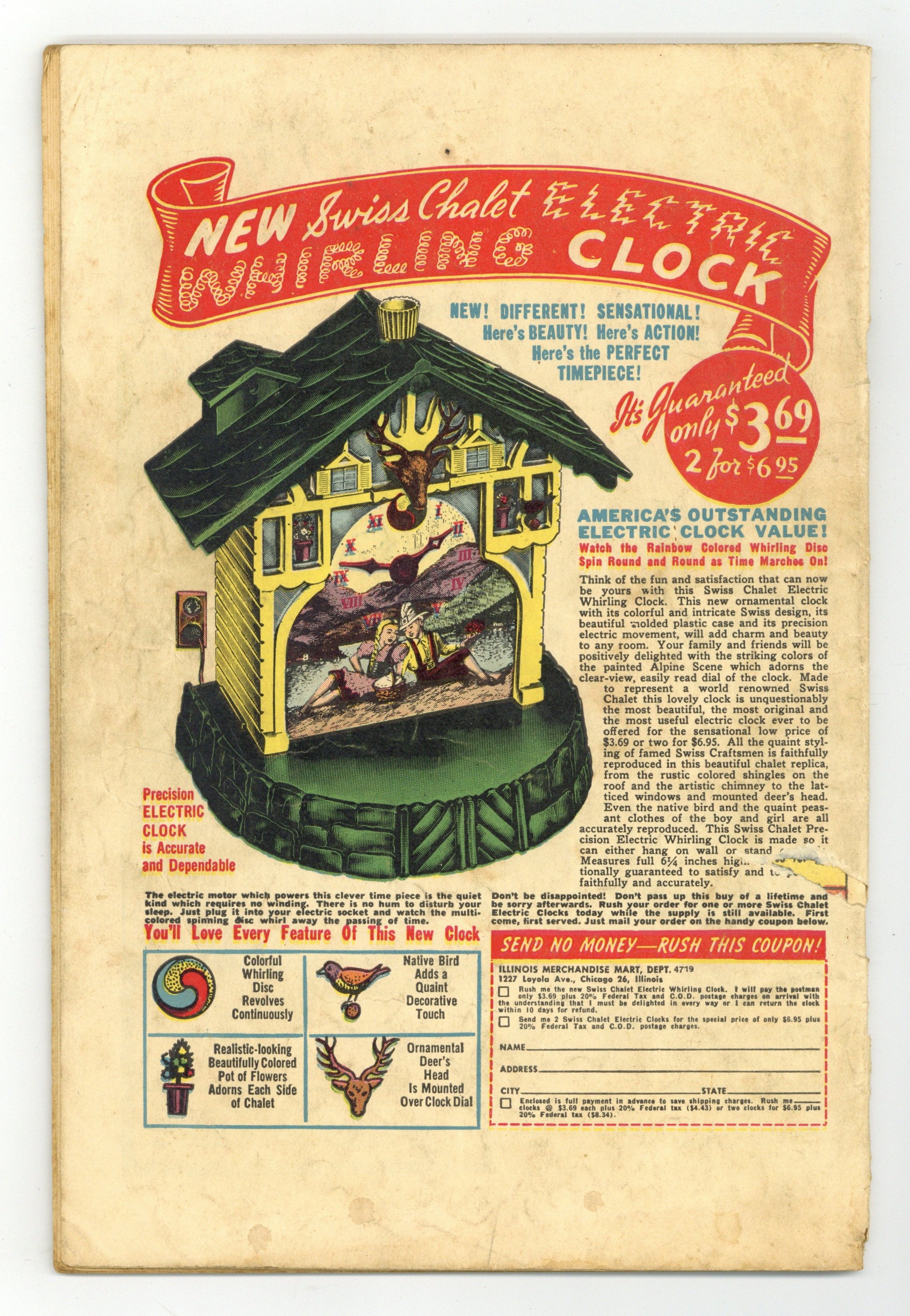 - Centerfold detached. Moisture damage. Staple rust.