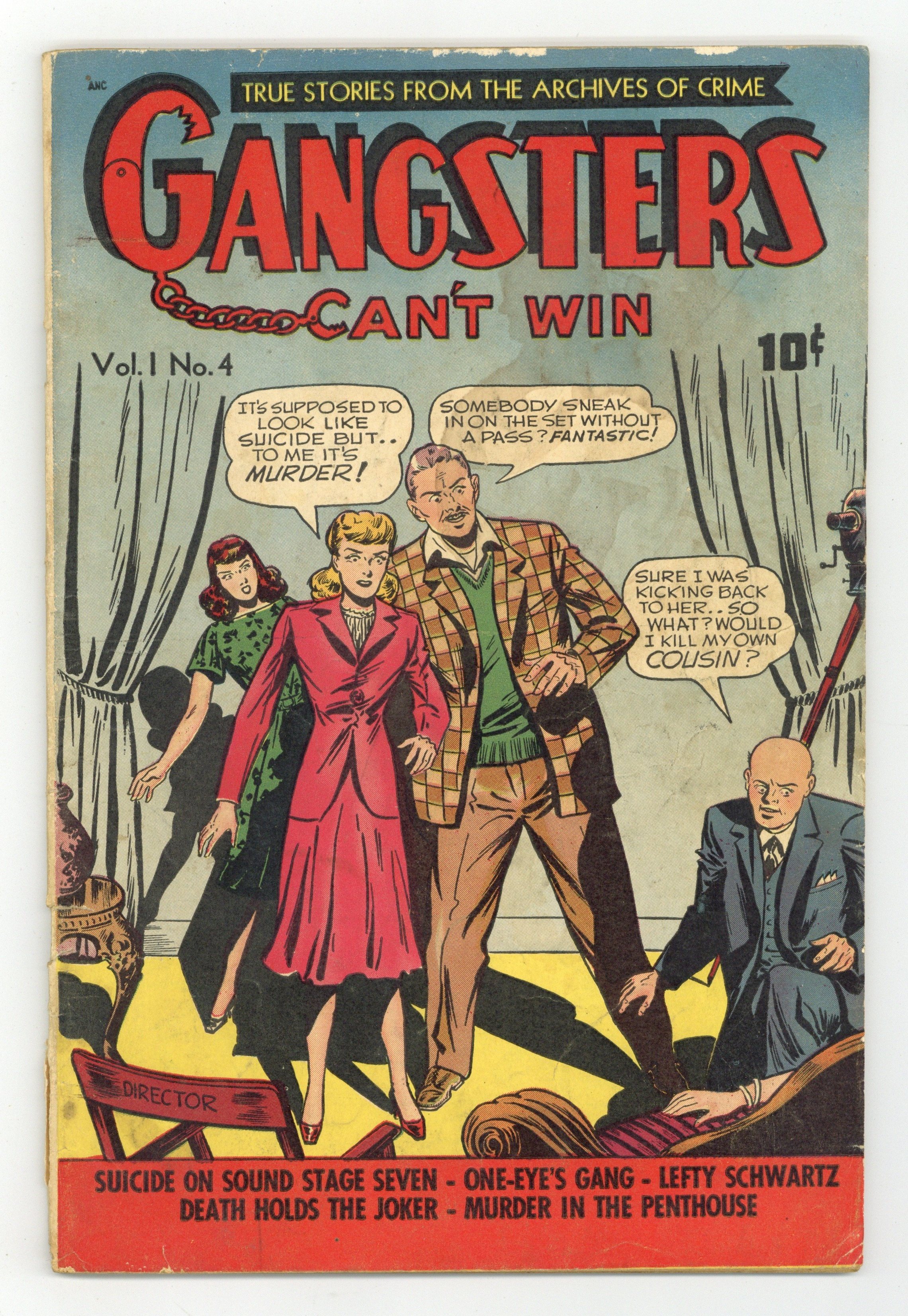 Untitled story, script by Drew Murdoch, art by Iger Studios and Jack Kamen; Convict Red Harrison breaks out of prison and is led by the ghost of a murdered policeman to the son of the cop, who is about to embark onto a life of crime. Untitled story, script by Armand Weygand, art by Lily Renée; In Cairo, Professor Broussard battles Cephalia, a sorceress releasing an army of deadly spiders. Untitled story, script by Armand Broussard, art by Lily Renée; In Bagdad, Professor Broussard finds his face woven into a carpet and experiences a wild hallucination about robbing precious gems and killing for it. The Dark Eyes of Destiny, script by Drew Murdoch; Drew Murdoch investigates a pair of mystic glasses predicting doom – and their mysterious owner, a certain Azrael. 36 pgs. $0.10. Cover price $0.10.