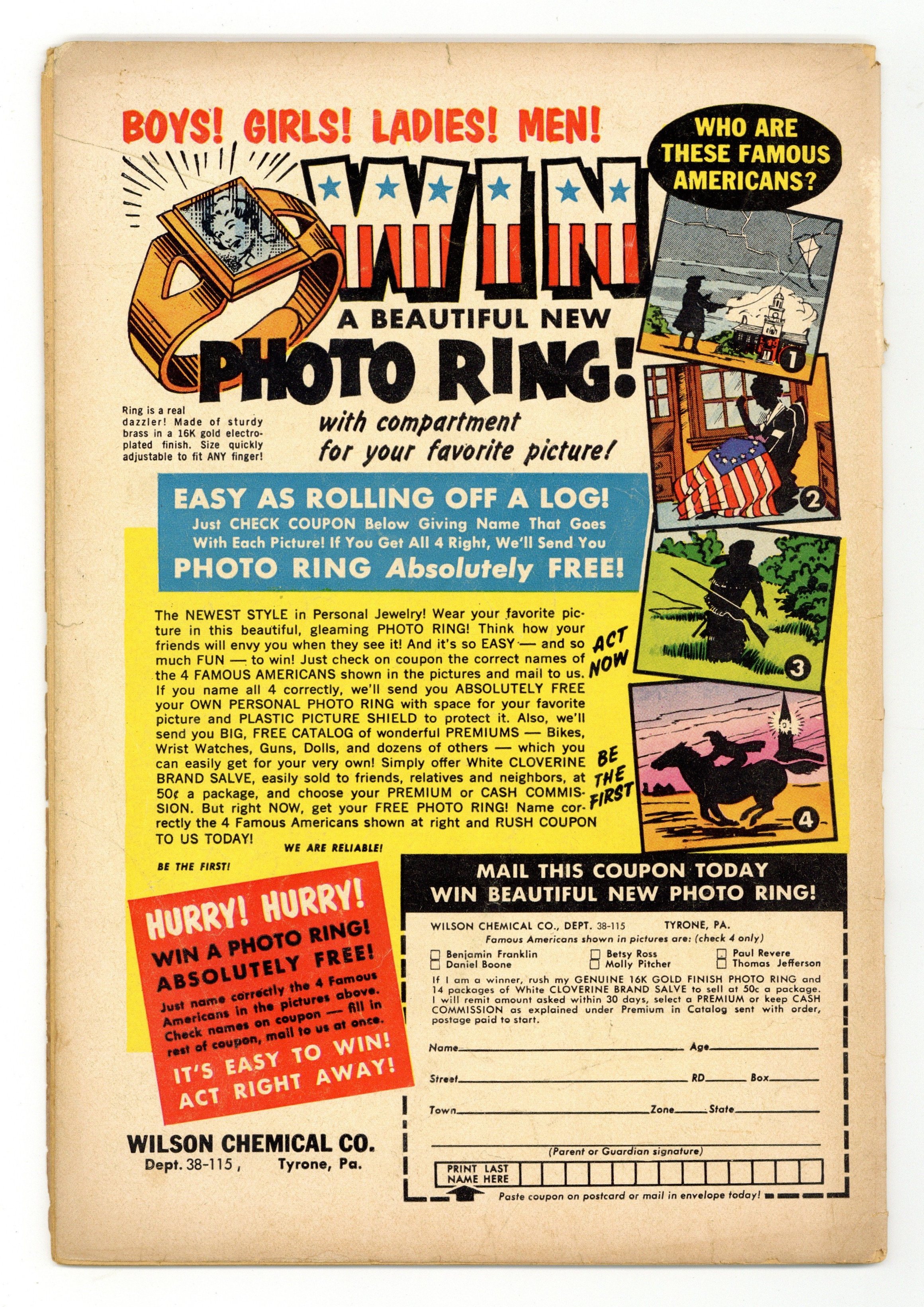 Cover by Matt Baker. Stories and art by Matt Baker and Dana Dutch. Tales of teen angst and amour, often featuring art and covers by celebrated good-girl artist Matt Baker. Cheryl tries trickery to win Edmund, but when that has the opposite effect, she takes a different approach, in a story with art by Baker. In another Baker story, Edna falls for Jack, the writer in her family boardinghouse, but then she sees he's writing letters to Carole. In still another Baker story, Gwen is dating handsome, wealthy Richard, but has a secret in her past that she is certain will doom their future together. First Love; Love Isn't for Deceivers; Unfair to My Boy Friend; The Runaround; Blinded by My Ideals; Love's Worst Enemy: Suspicion! Final issue of the series. 32 pages, Full Color. Cover price $0.10.