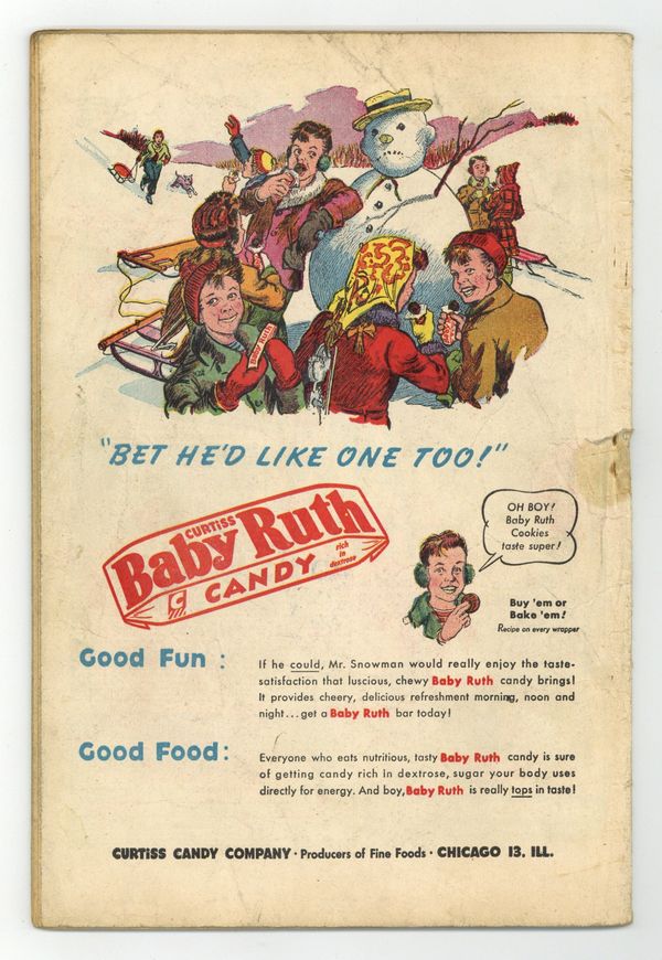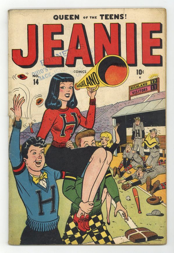 Stories by unknown. Art by Al Jaffee, Valerie Barclay and unknown. Jeanie, Queen of the Teens stars in four tales with art by Al Jaffee and Valerie Barclay: "The Bowling Blues!"; "Movie Madness!"; "The Gay Blades!"; and "Horsin' Around!" Also in this issue: Willie in "What's Buzzin', Cousin?"; 2-page text story "The New Member"; and Mitzi in "Croon Goon!" 48 pages, full color. Cover price $0.10.