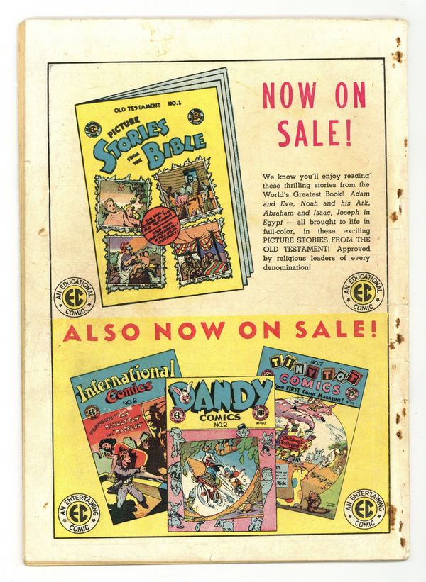 Cover pencils by Howard Purcell (as Bachelor). "The Statues of Stanley Killen," pencils by Howard Purcell; Van investigates the murder of a sculptor to see if there is a connection between his killing and the theft of jewels from a local diamond shop. "Countess Sophia's Painting," art by Sheldon Moldoff; Igor is now a hunted man after his father was tortured to death on the rack and meets up with the sister of Countess Sophia whom he attempts to rescue from the Czar. Untitled Juan Meatbal story. "The Goodwill Potion" (Part 2) text story. Untitled That's Madelon story, art by Sheldon Moldoff. "Early Life of Benjamin Franklin" one-page story, art by Allen Simon. 36 pgs., full color. Cover price $0.10.