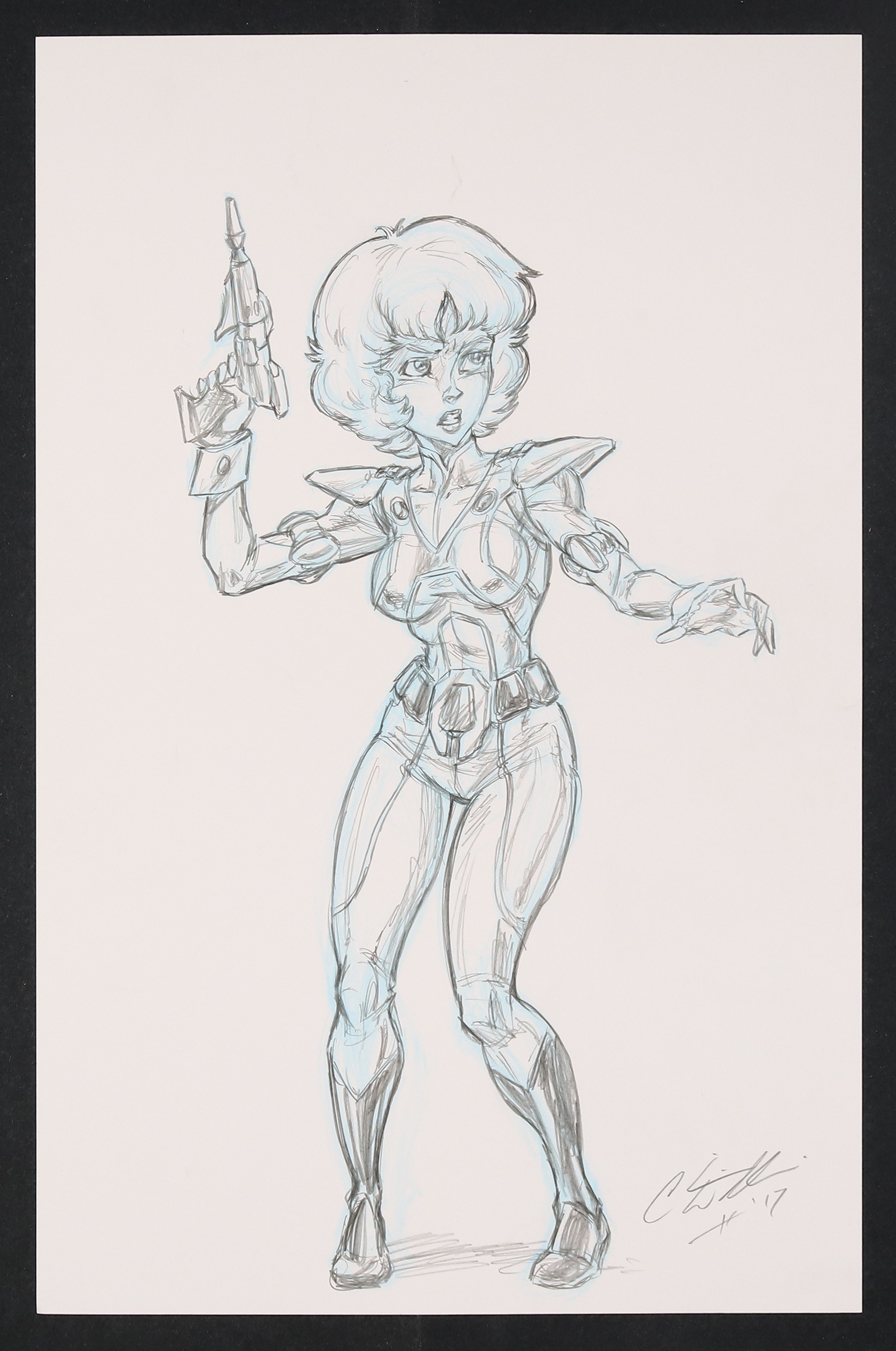 - Williams does an incredible job of working minor details into this sketch of Dana Sterling, especially managing to give her hair a distinctly 80's feel without needing the volume of the original design. Blue line and standard pencil on reverse of art board. Signed by the artist. 11" X 17".