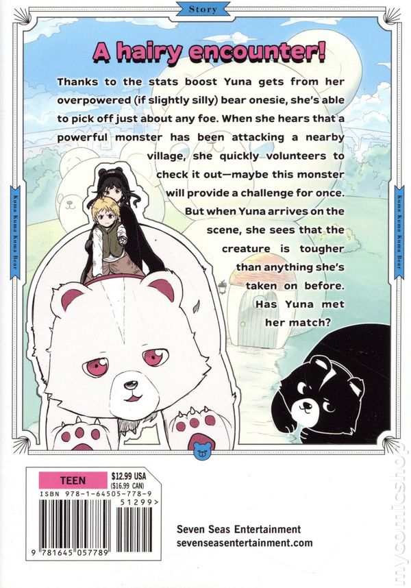Volume 3 - 1st Printing. Written by Kumanano. Art and Cover by Sergei. Character design by 029. A HAIRY ENCOUNTER! Thanks to the stats boost Yuna gets from her overpowered (if slightly silly) bear onesie, shes able to pick off just about any foe. When she hears that a powerful monster has been attacking a nearby village, she quickly volunteers to check it out—maybe this monster will provide a challenge for once. But when Yuna arrives on the scene, she sees that the creature is tougher than anything shes taken on before. Has Yuna met her match?! Softcover, 5-in. x 7 1/2-in., 180 pages, B&W. Cover price $12.99.