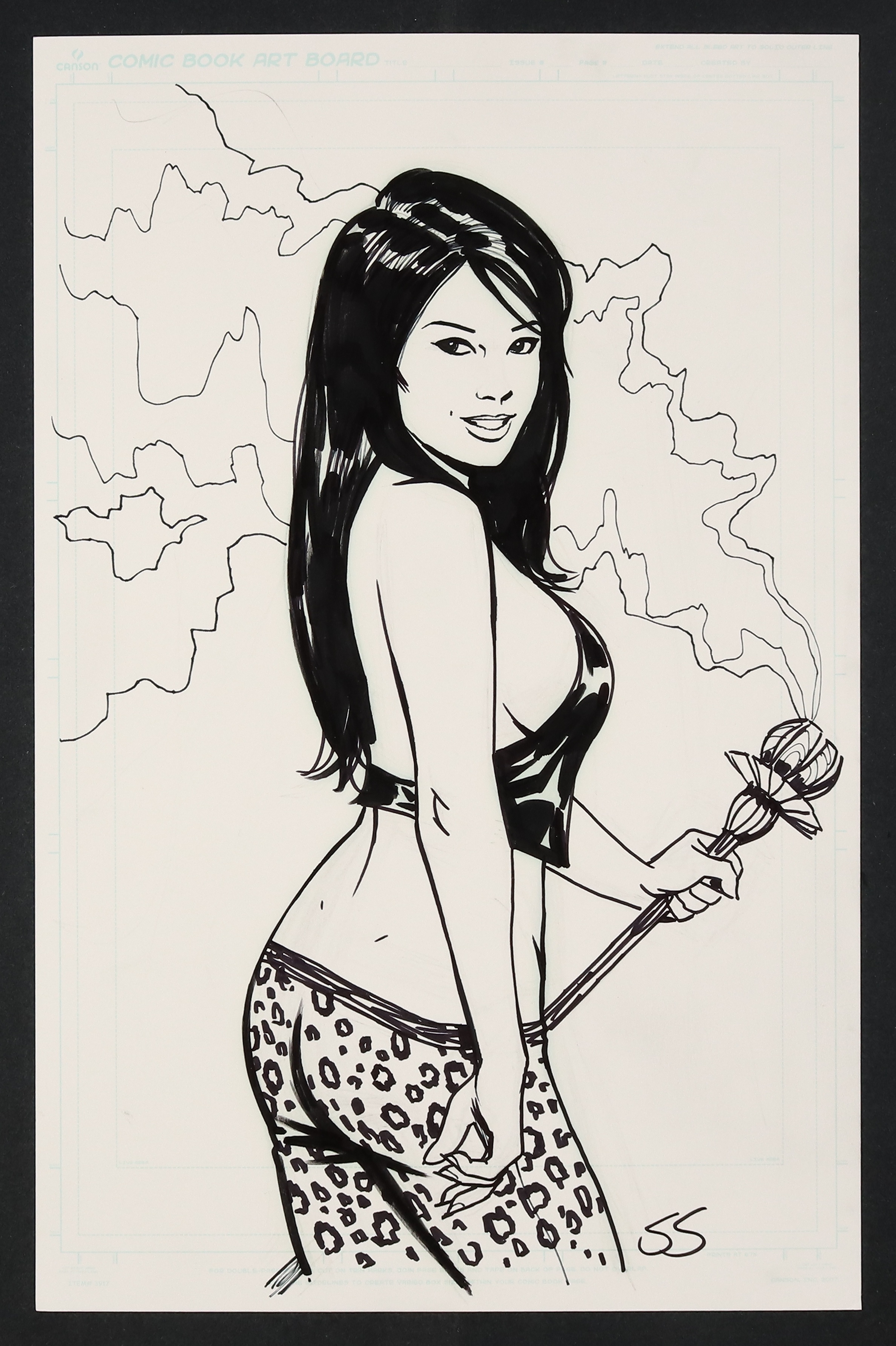 Hobart does and incredible job of taking a classic character and giving them a more modern look while also managing not to loose that cartoon feel. Blue line pencil on heavy stock. Signed by the artist. 9" X 11 7/8".