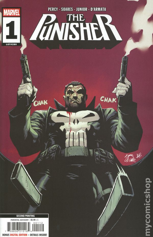 2nd Printing. (W) Benjamin Percy (A) Jose Luis Soares (CA) John Tyler Christopher CRIME'S WORST NIGHTMARE IS BACK IN AN ALL-NEW ONGOING SERIES! As unflinching and uncompromising as ever, Frank Castle's memory is damaged and he's hunting for answers and criminals alike! He'll get more than he bargained for of both when the notorious and bloodthirsty JIGSAW returns…with THE PUNISHER dead in his sights! RATED PARENTAL ADVISORY. 32 pages, full color Cover price $5.99.