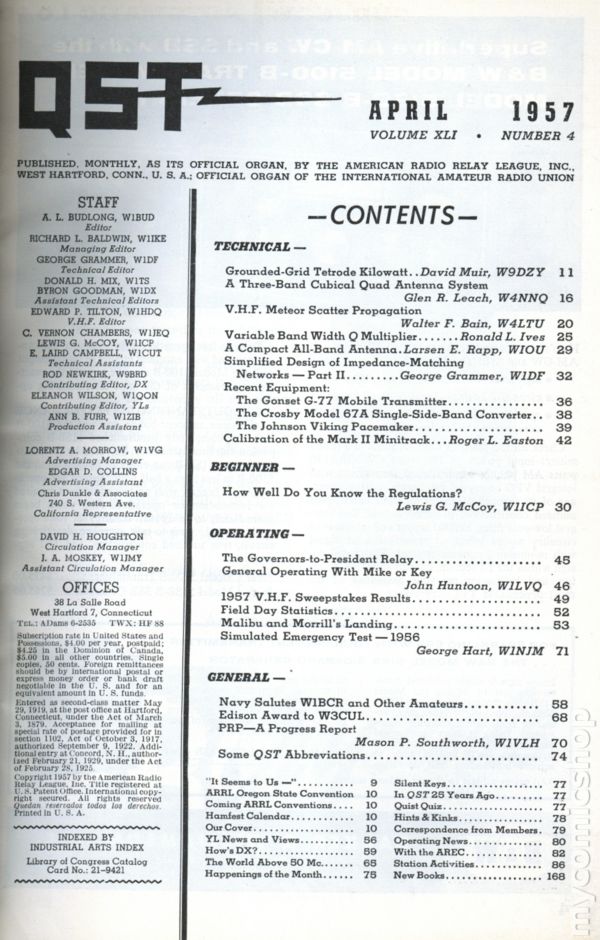 Published Apr 1957 by American Radio Relay League, Inc..$24.00