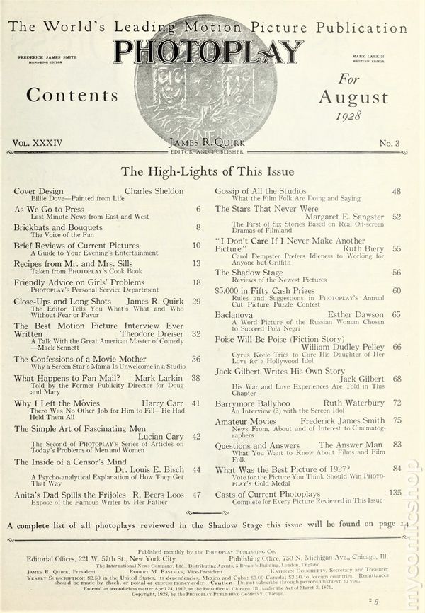 Vol. 17 #4 - August 1928. Norma Shearer cover by Georgia Warren. Articles on Tom Mix, Jeanette Loff, Loretta Young, Buster Keaton, and more. 8.5" x 11.5". 104 pages. B&W. Cover price $0.25.