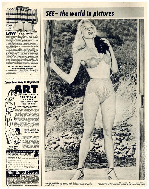 Cover art by John Prentice. "Every Afternoon at Four"; Wealthy businessman Reggie and his girlfriend Phyllis visit his home town; Reggie is attracted to nurse Lola, which makes Phyllis angry; She returns to the city. "I Was That Colman Girl"; After her mother dies, Ginny goes to live with her aunt and uncle but is lonely in her new town and school; She dates Rick, who has a wild reputation, then meets newcomer Kent. "Sunset of Love," script and art by Dick Briefer; Artist Jeans career is managed by his girlfriend Paulette, who forbids him to paint portraits and insists he only do landscapes and still lifes; Jean paints a portrait of a young woman from his imagination but Paulette is sure Claudia, who runs a small art gallery, was his model. "They All Laughed" text story. "Horse and Buggsie," art by Jules Steiner; Horse and Buggsie try to scare each other in a haunted house. "The People on the Drive," art by Billy Ely; Ambitious Marva dates high-society Alec and gets an invitation to spend the weekend at his family home; She is surprised that his family doesnt behave the way she expects rich people to act; They, in turn, think shes a snob. "Crying Is Not for the Theatre"; Helen loves aspiring actor Barry; She gets a job as an elevator operator in the theatrical district so she can see him regularly, but he ignores her when hes accompanied by producers and other actors; Barry is a success in his first play but Helen thinks hes romantically involved with his co-star Thea. 52 pgs., full color. Cover price $0.10.