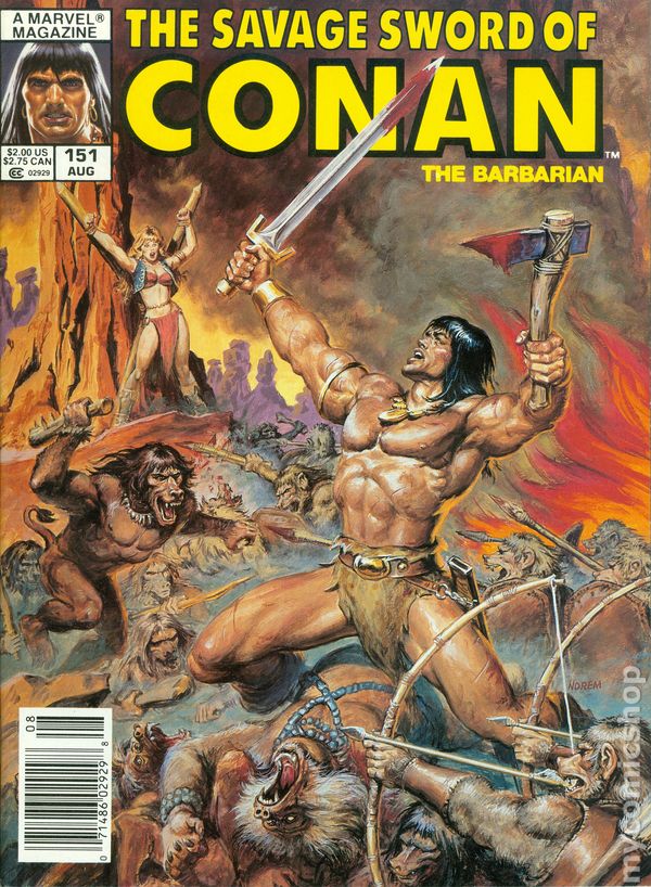Newsstand Edition. Conan stars in "Fury of the Near-Men." Script by Charles Dixon, breakdowns by Gary Kwapisz, finished art by Ernie Chan. This issue also features a story starring King Kull in "A Bond of Blood" by John Arcudi and Mark Pacella. Earl Norem front cover. Cover price $2.00.