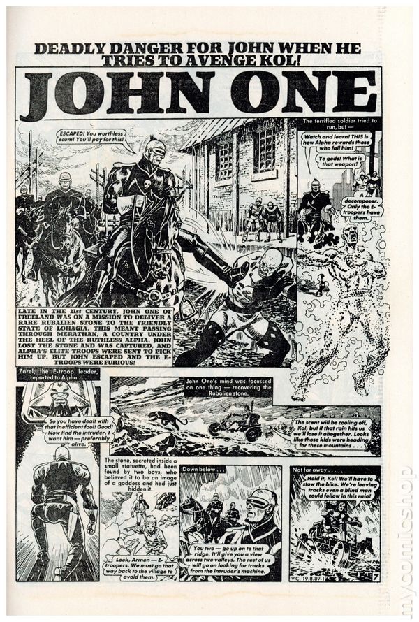 UK/British Comic. Cover by John Ridgeway. Mature Readers. B & W comic. "Light Brigade" by Neil Gaiman & Nigel Kitching. "Baccus" by Eddie Campbell. "Shadows" by Mike Collins, Robin Laing, & Pete Martin. "Lowlife" by Gavin Butler & Steve Martin. "St. Swithin's Day" by Grant Morrison and Paul Grist. "Dom Zombi" by Dominic Regan. Cover price $3.50.