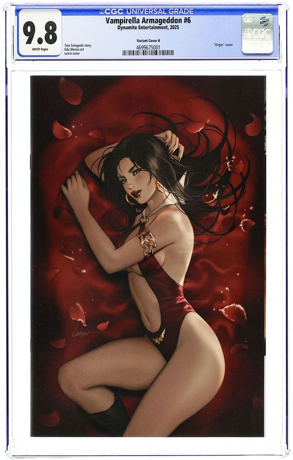 Tags: VampirellaPublished 2025 (est.) by Dynamite Entertainment.Vampirella Armageddon (2025 Dynamite) 1R CGC 9.8 Li Virgin 1:15 Variant