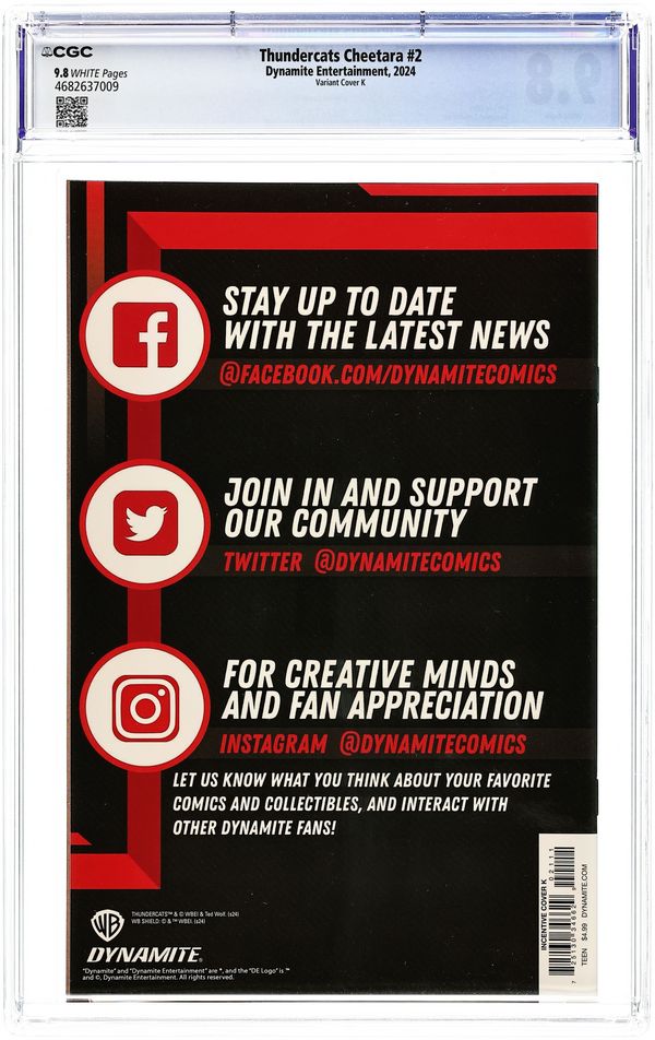 Published Aug 2024 by Dynamite Entertainment.Thundercats Cheetara (2024 Dynamite) 2K CGC 9.8 Lee Virgin 1:15 Variant