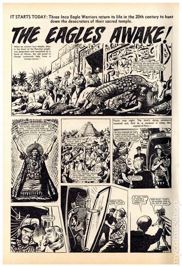 UK edition. Identical to US edition, but has 6p cover price. Cover art by John Severin. Kraa the Unhuman, pencils by Jack Kirby, inks by Dick Ayers; An American teacher investigates the mysterious statues made by one tribe in Africa, and finds that they worship a native mutated into a monster by a Soviet atomic test. Meet the Dead, art by Don Perlin; A medium gets her spirit contacts to frame another medium as a fake who is draining away clients from her. Dead Ringer!, script by Mimi Gold, art by Rich Buckler; An escaped death row convict finds that, even on the outside, he cannot run away from his sentence. All reprints. 36 pages, full color.