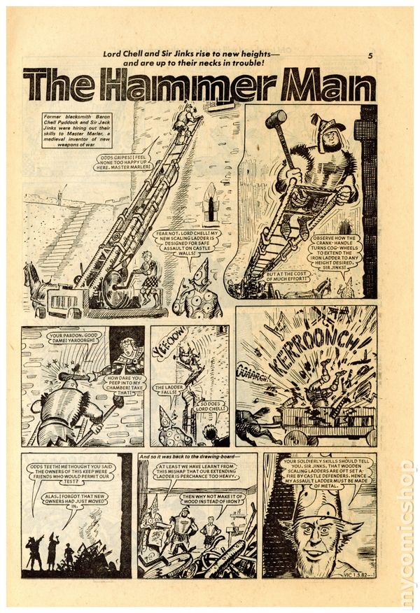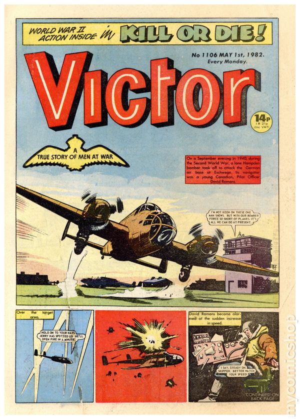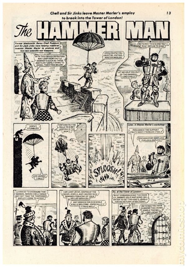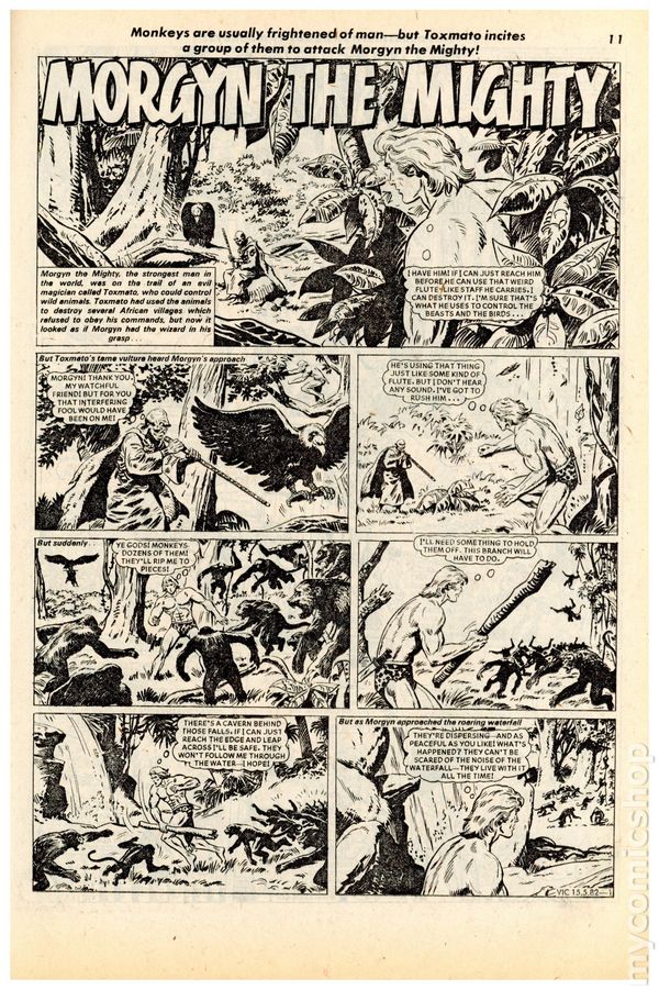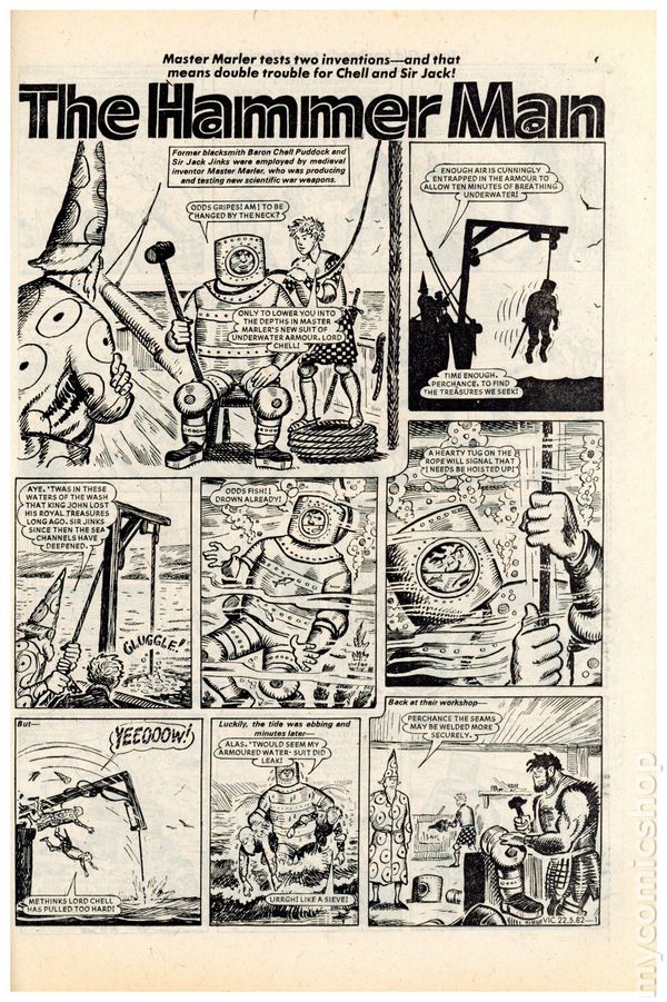 May 1, 1982. Published by D.C. Thompson and Co. Ltd. in Great Britain. Action/adventure stories feature the Quest of the Last Six Hundred, Johnny Gurkha, the Punch Pirate, Morgyn the Mighty, Legion of the Lost, Duke Farlow, Taneebo the Thunderbolt, and more. 8.5 x 11.75; black and white; 32 pages; 14p cover price.