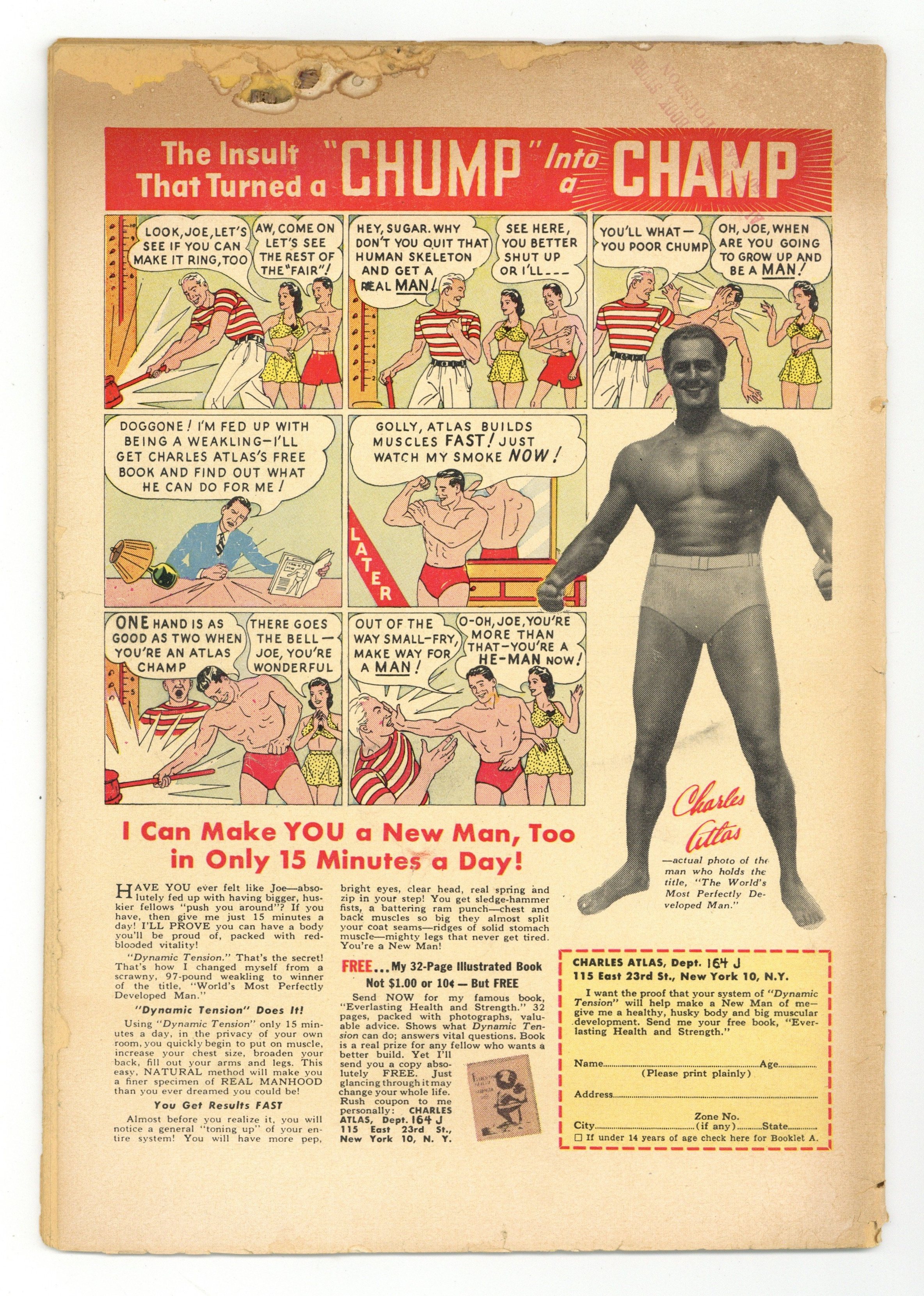 - INCOMPLETE. Half of first page missing, affects art and story. Heavy interior oxidation with some spine splitting to wraps as well as cover.