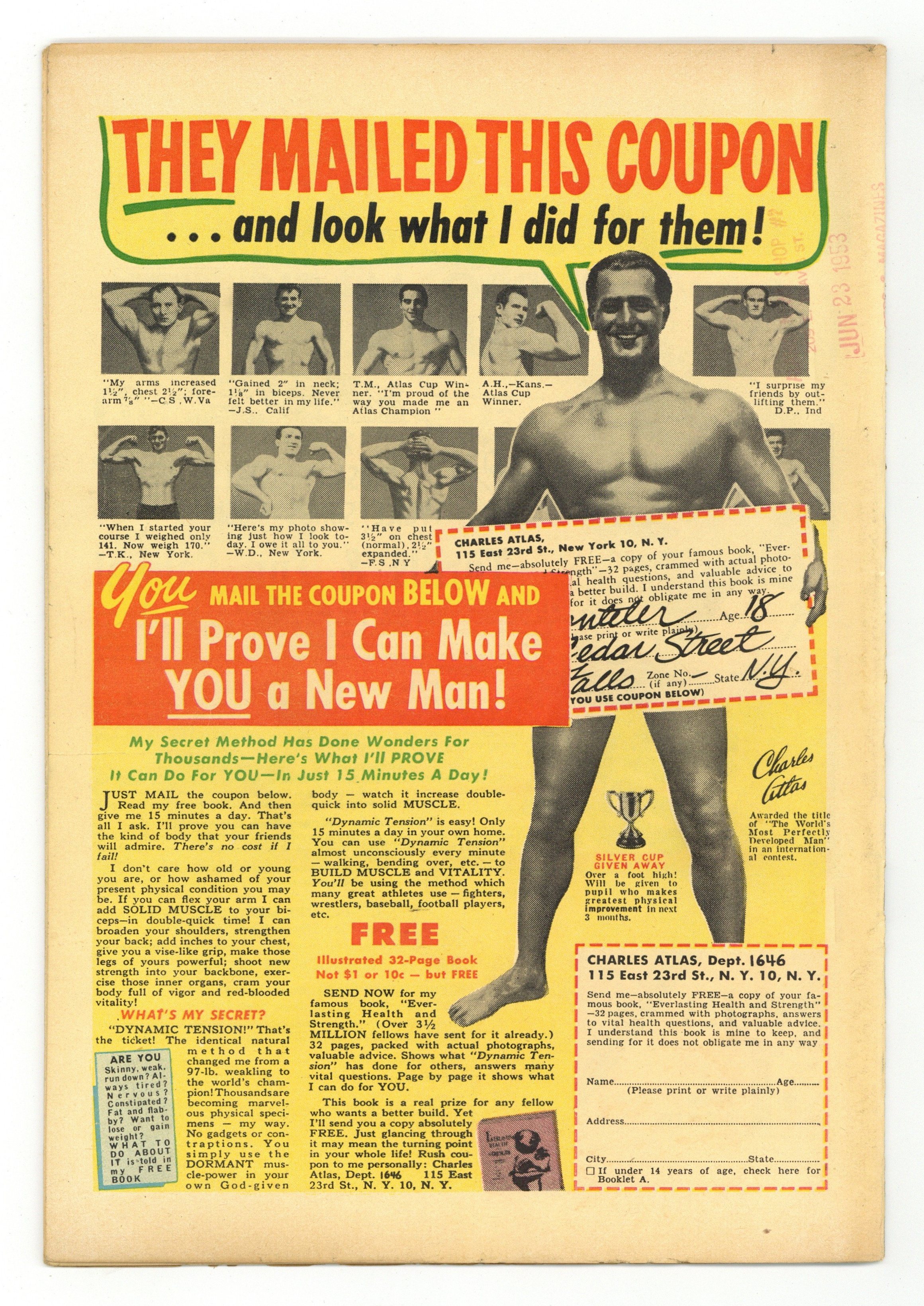 - Interior is complete. Full length spine split. Centerfold and first wrap detached at one staple. Brittle.