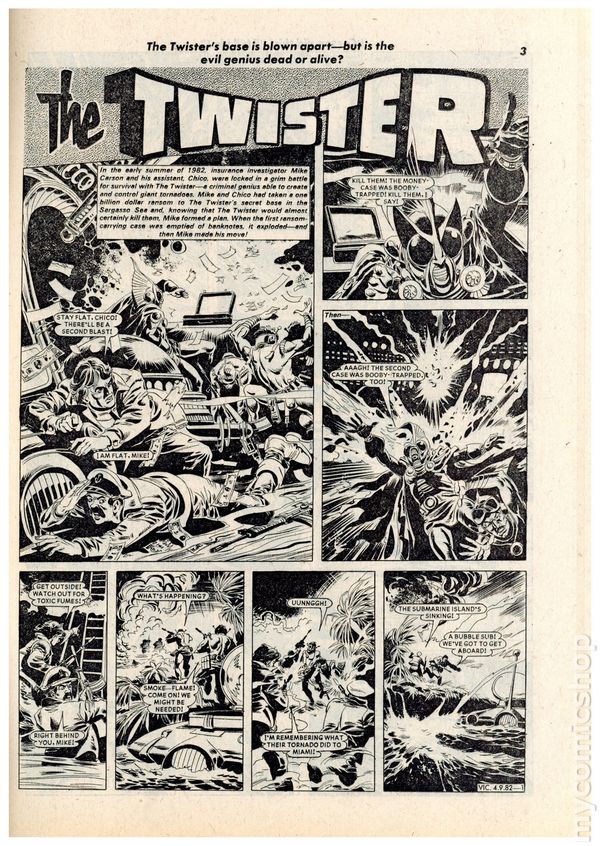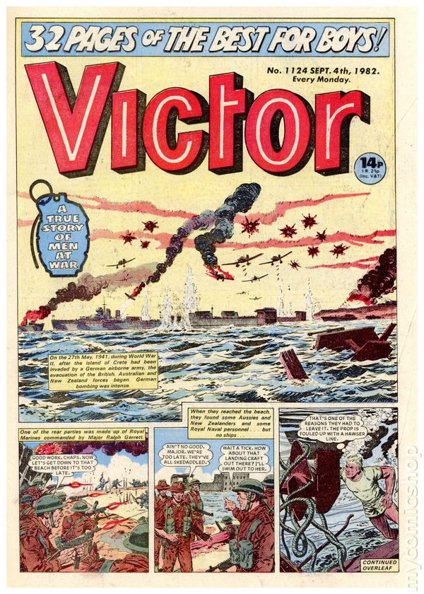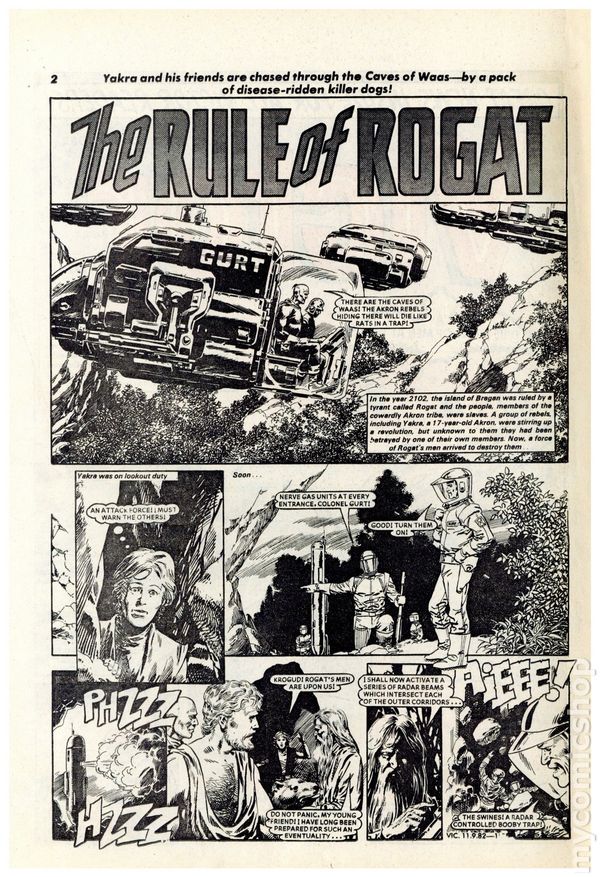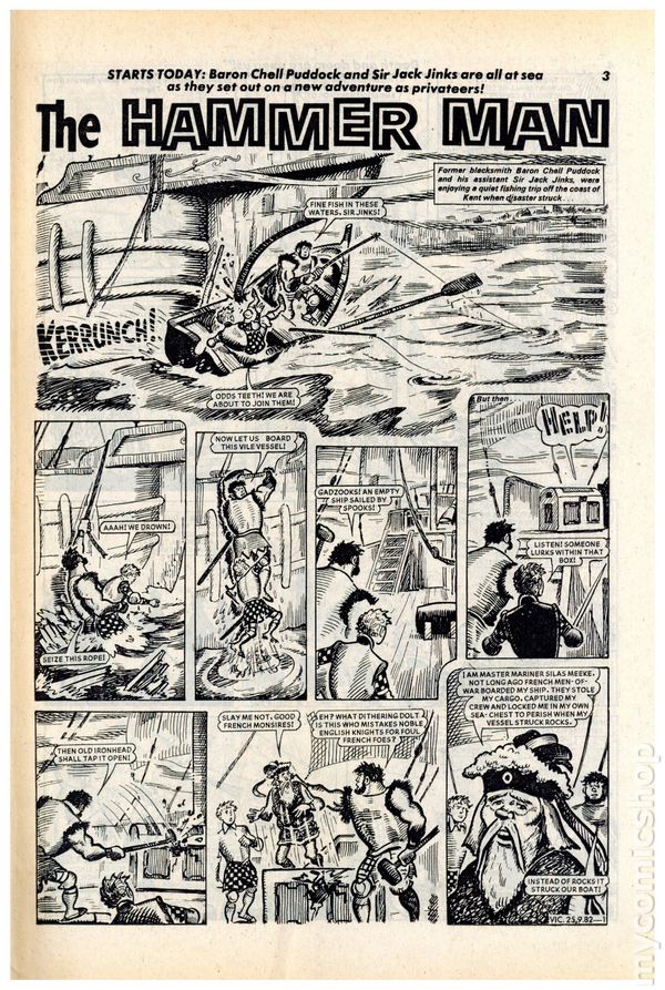 View scansSeptember 25, 1982. Published by D.C. Thompson and Co. Ltd. in Great Britain. Action/adventure stories feature the Quest of the Last Six Hundred, Johnny Gurkha, the Punch Pirate, Morgyn the Mighty, Legion of the Lost, Duke Farlow, Taneebo the Thunderbolt, and more. 8.5 x 11.75; black and white; 32 pages; 14p cover price.