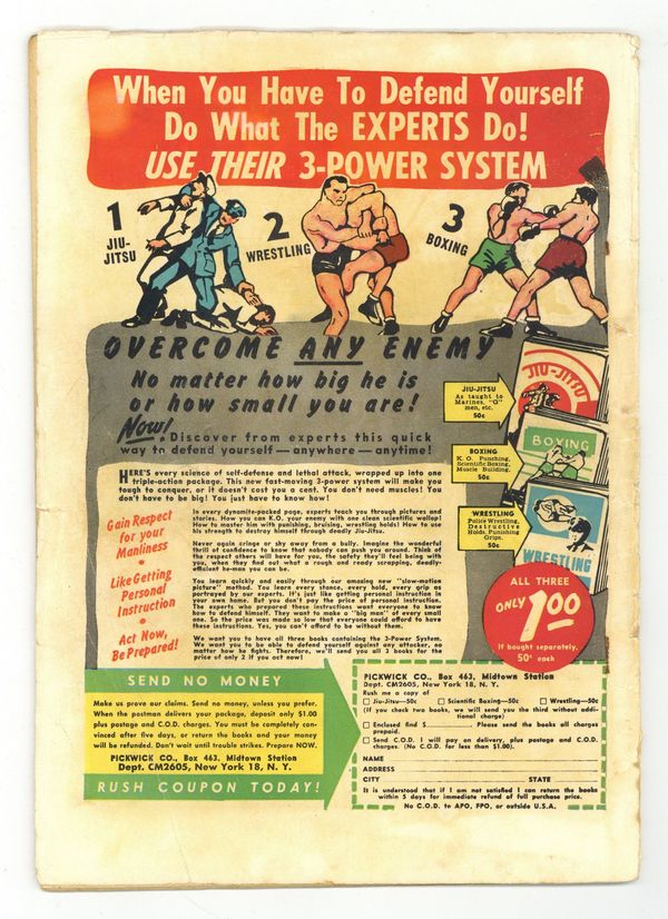 Edited by Vince Fago. Cover by Alex Schomburg. Stories by Vince Alascia, Al Bellman, Al Avison, and Dan Barry. Super-hero tales featuring the Young Allies team, consisting of Toro (Thomas Raymond), Bucky (James Barnes), Knuckles (Percival Aloysius O'Toole), Jefferson Worthington Sandervilt, Whitewash Jones, and Tubby (Henry Tinkle). 52 pages, full color. $0.10. Cover price $0.10.