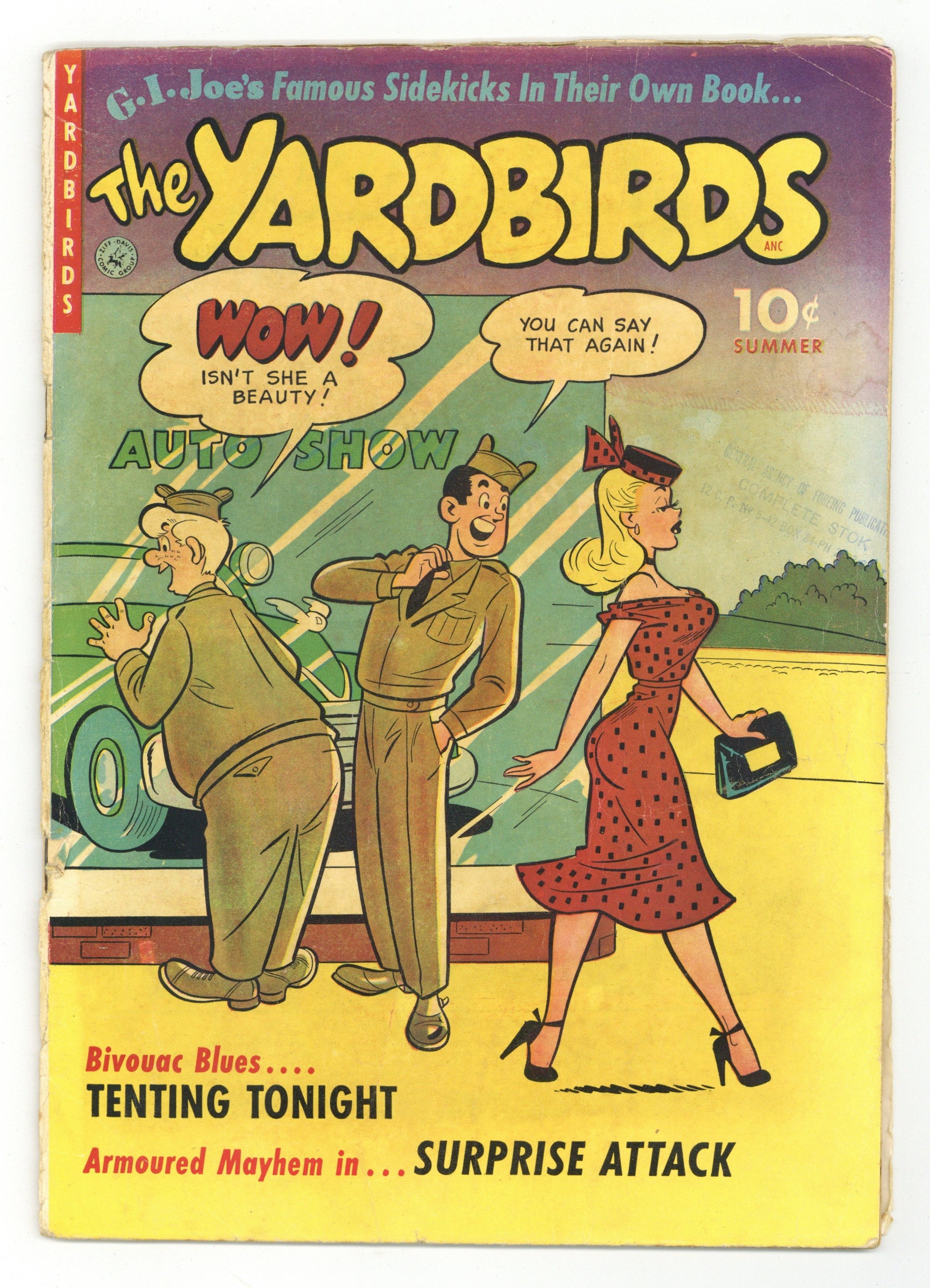 "Warning!" (art by Gene Colan), "Valley Forge!" (art by Bill Everett), "Gas!" (art by Dave Berg), "The Talking War" (art by Henkell), and a two-page text story, "The Kid!" 36 pages, full color. Cover price $0.10.