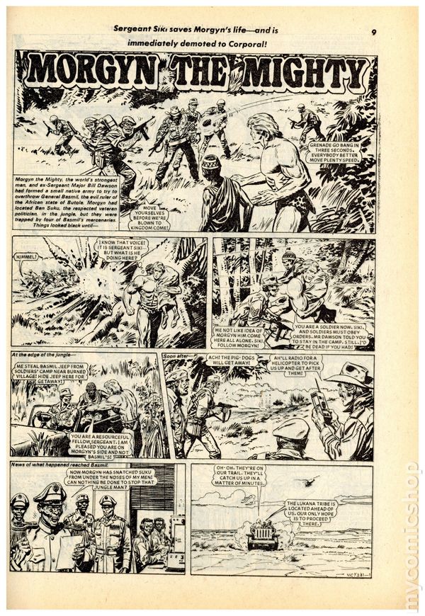 Morgan does everything he can to help Tara and her kingdom Shamballah which is under siege in "War." Script by and art by Mike Grell. Issue also has backup feature with Omac in "Battle Tower." Script by Dan Mishkan and Cary Cohn and art by Greg Larocque and Vince Colletta. Cover price $0.50.