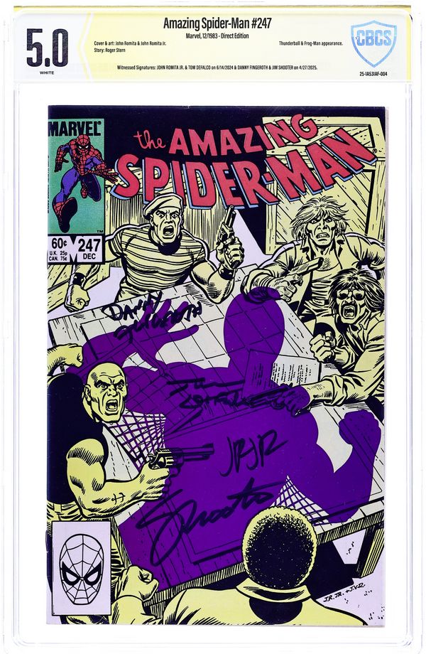- Witnessed Signatures: Tom Defalco on 6/18/2023, Al Milgrom on 9/10/2023 and Jim Shooter and John Romita Jr on 10/15/2023. Newsstand Edition.