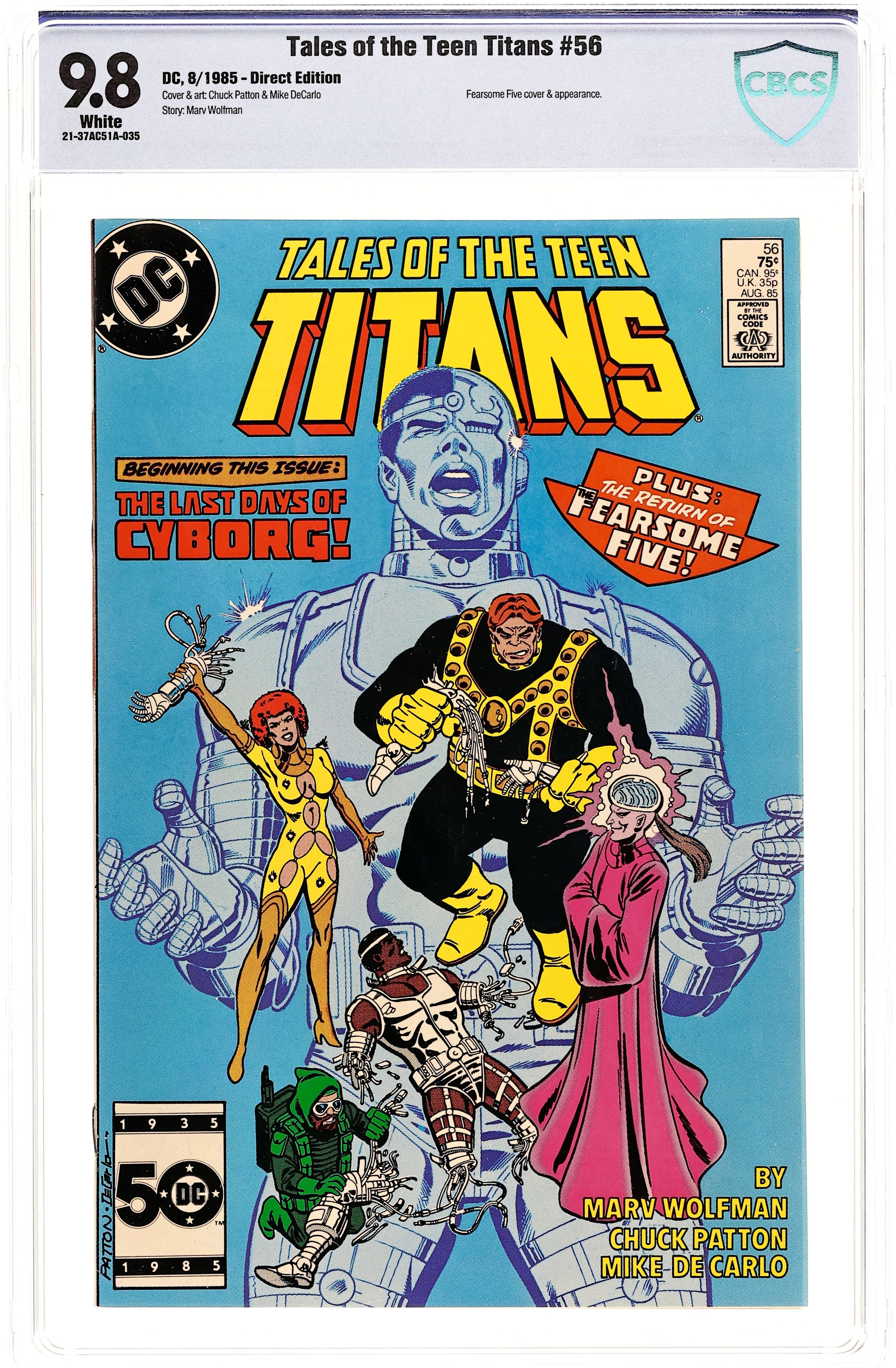 Direct Edition. First U.S. appearances of Psylocke and Meggan in "Why Do We Do These Things We Do?!" Mojo captures Betsy (giving her new eyes and the name Psylocke), then Wolfsbane, Sunspot, Karma's siblings and the Bratpack; the New Mutants meet Captain Britain; Cypher merges with Warlock. Characters: Cannonball, Cypher, Karma, Magik, Magma, Mirage, Sunspot, Warlock, Wolfsbane; GS: Captain Britain, Psylocke (Betsy Braddock; O; first U.S. appearance), Bratpack; V: Mojo, Spiral; GA: Meggan (first U.S. appearance); OC: Leong and Nga Xui Manh. Script by Chris Claremont, with art and cover by Alan Davis. Notes: This story occurs between New Mutants (1983 1st Series) #44 & #45; Spiral, Mojo and the Bratpack (Butch, Darla and Alfie) appear here following the Longshot limited series; a sequel to this story appears in Uncanny X-Men (1963) Annual #10. Cover price $1.25.