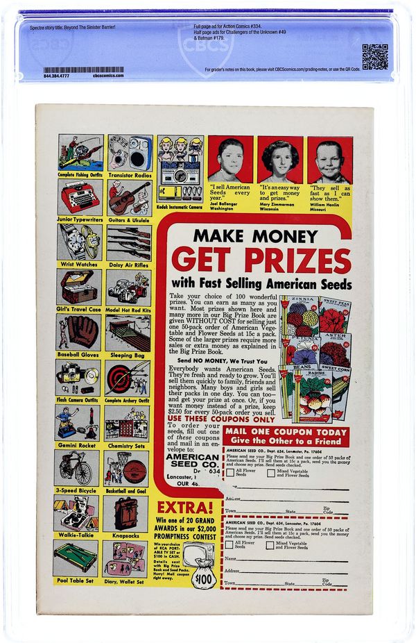 Cover art by Murphy Anderson. Beyond the Sinister Barrier!, script by Gardner Fox, art by Murphy Anderson; The Spectre battles the demonic Shathan the Eternal. Cap's Hobby Hints by Henry Boltinoff. Cloud 9 page of cartoons by Mort Drucker. 36 Pages, Full Color. Cover price $0.12.