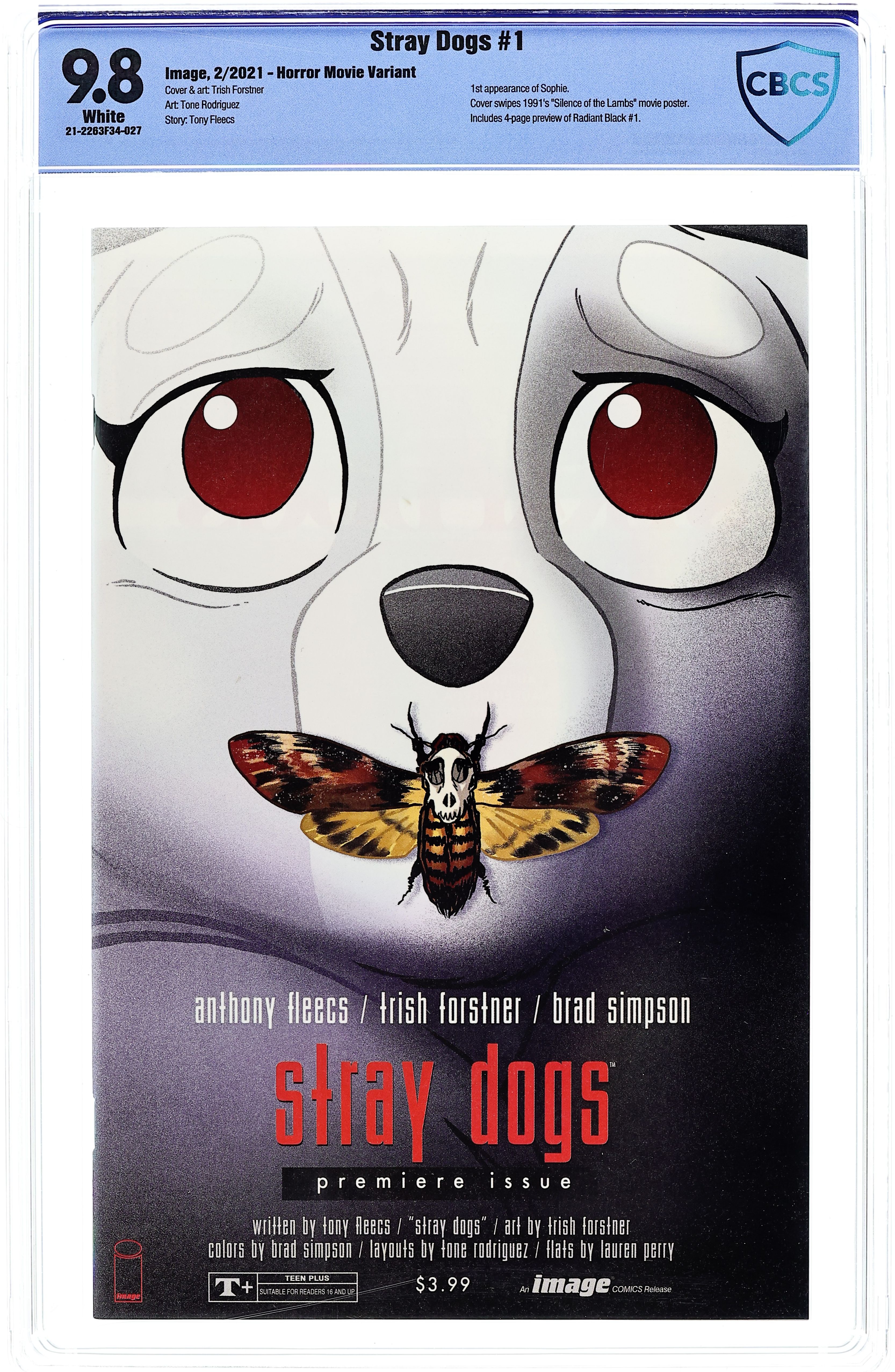 Written by Tony Fleecs. Art by Trish Forstner. Cover by Trish Forstner and Tony Fleecs. Lady and the Tramp meets Silence of the Lambs It's scary being the new dog. Sophie can't remember what happened. She doesn't know how she ended up in this house. She doesn't recognize any of these other dogs. She knows something terrible happened, but she just… can't…recall... WAIT! Where's her lady? A five-issue Don Bluth-style suspense thriller by My Little Pony comic artists TONY FLEECS and TRISH FORSTNER, STRAY DOGS is Lady and the Tramp meets Silence of the Lambs. 32 pages, full color. Rated T+ Cover price $3.99.